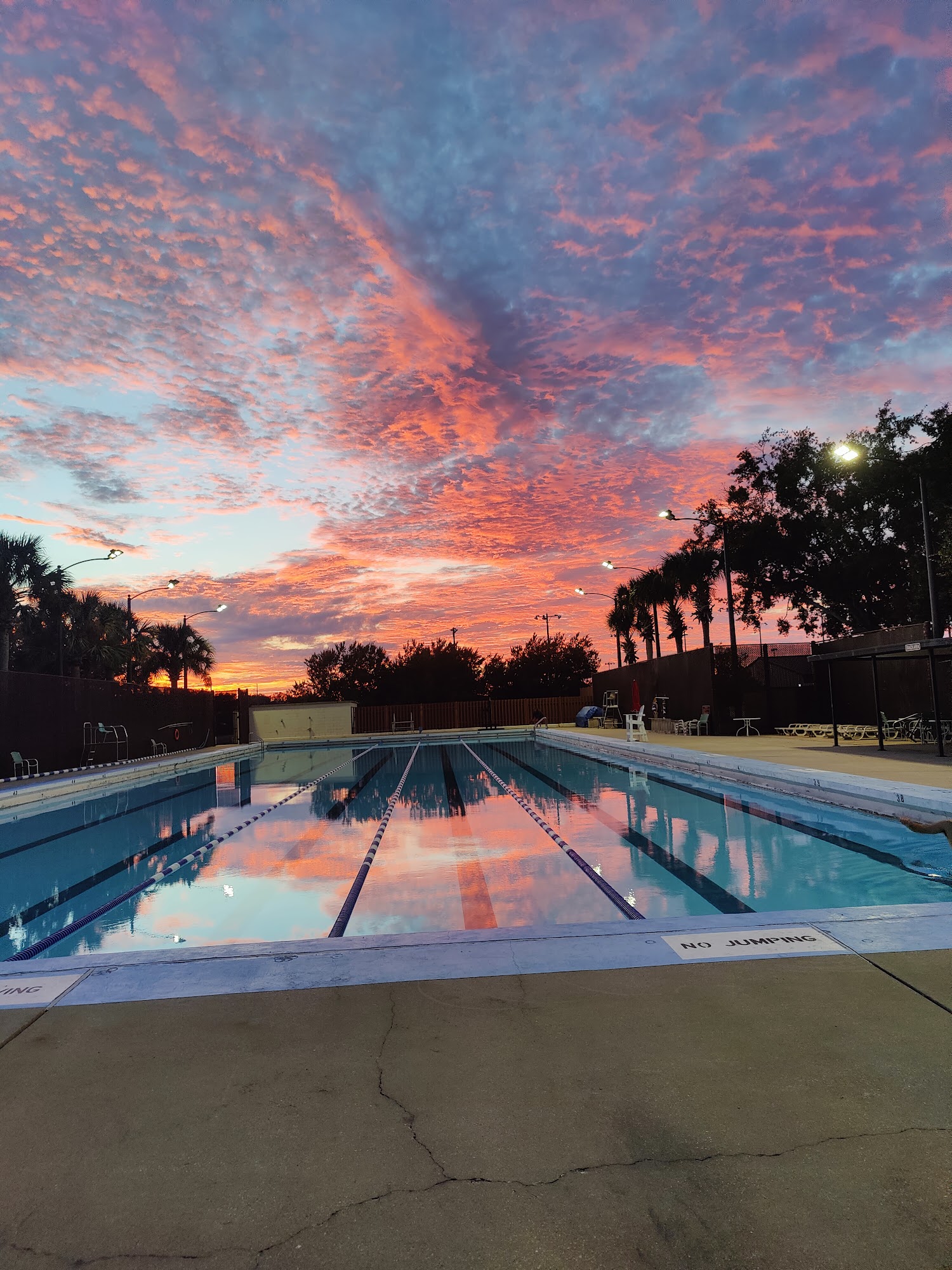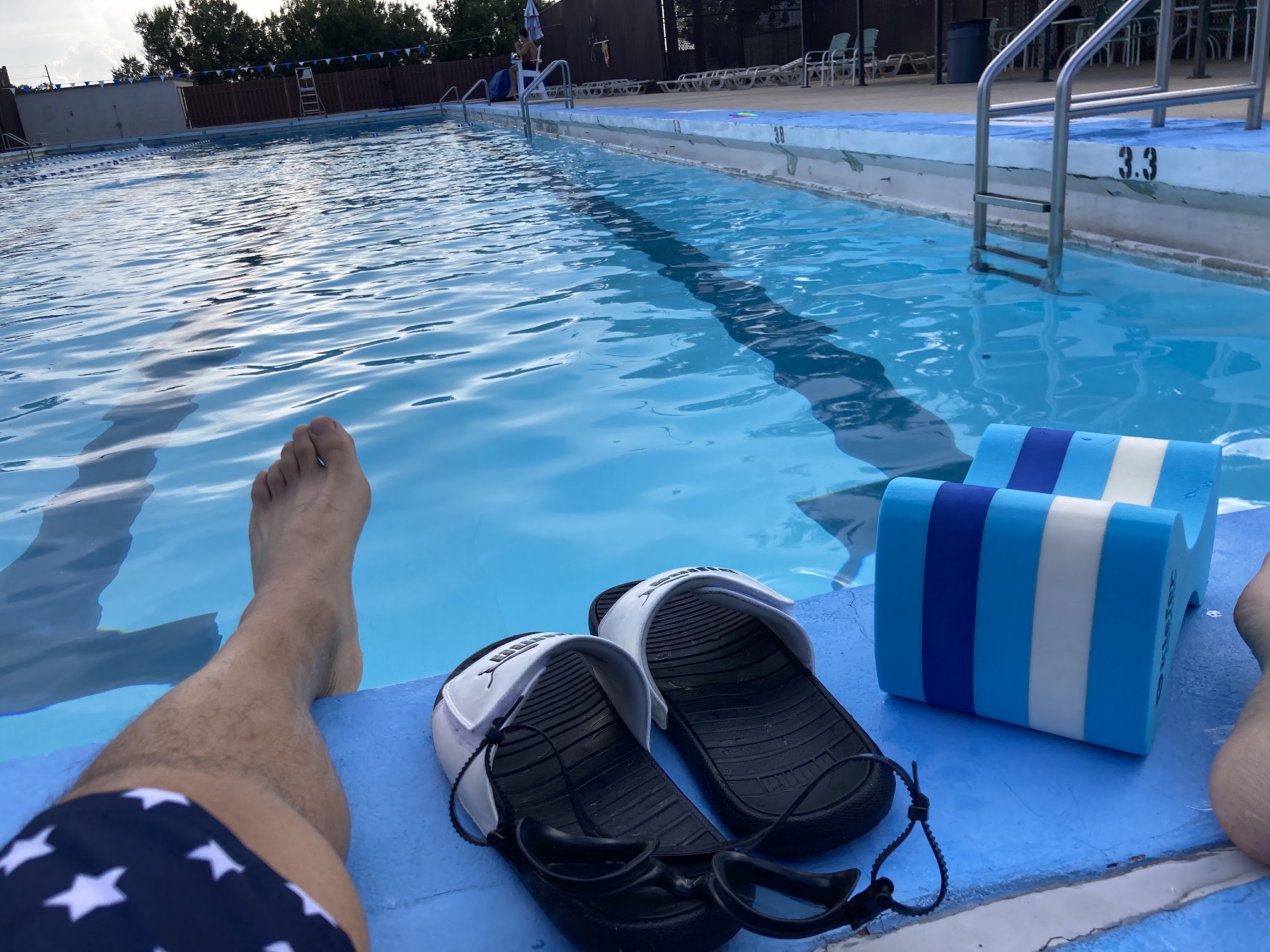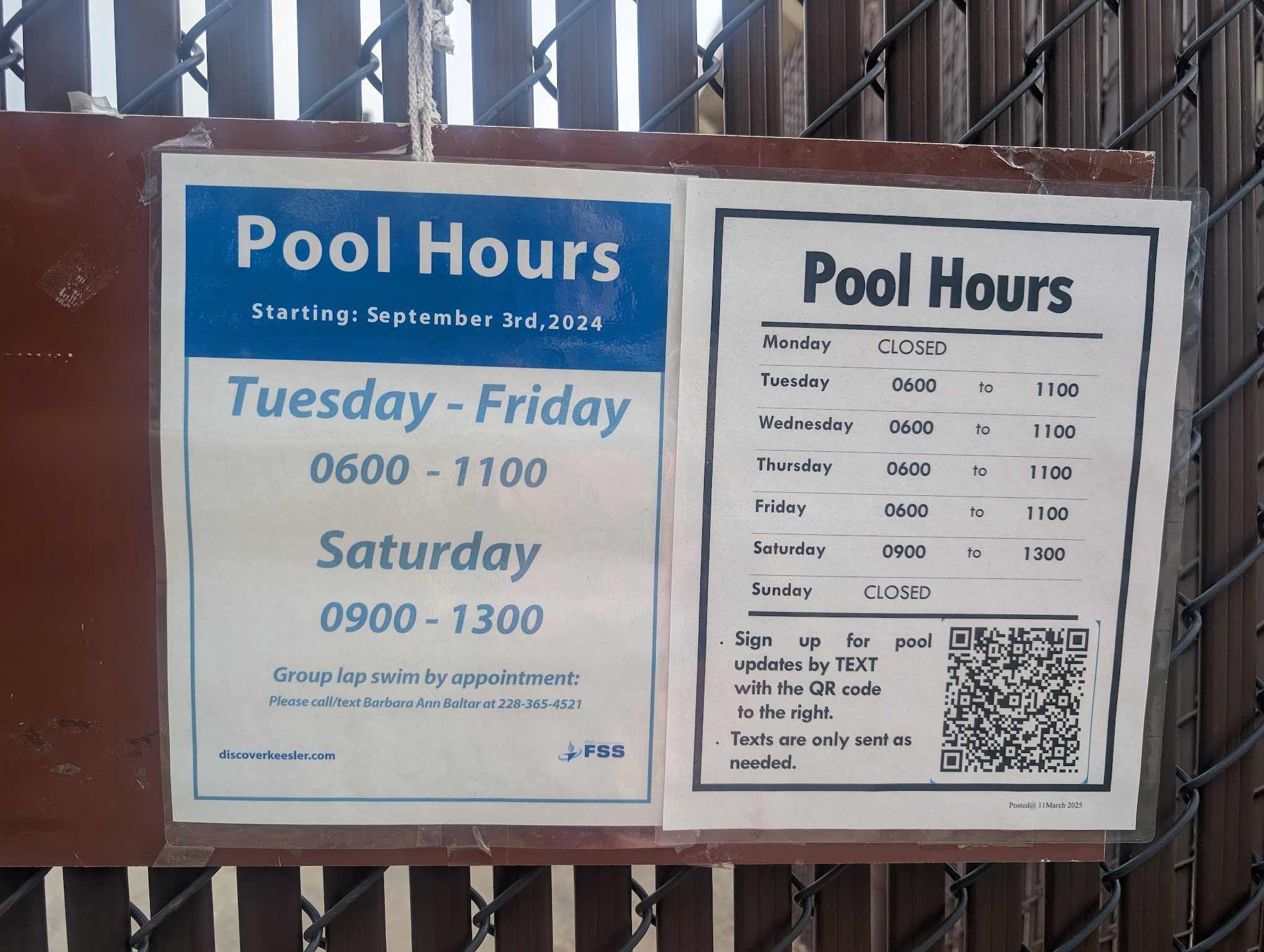 Free swimming for those with base access. Seems to be about a 50/50 mix of general base populace and tech schoolers. Plenty of eager lifeguards armed with whistles and horns.