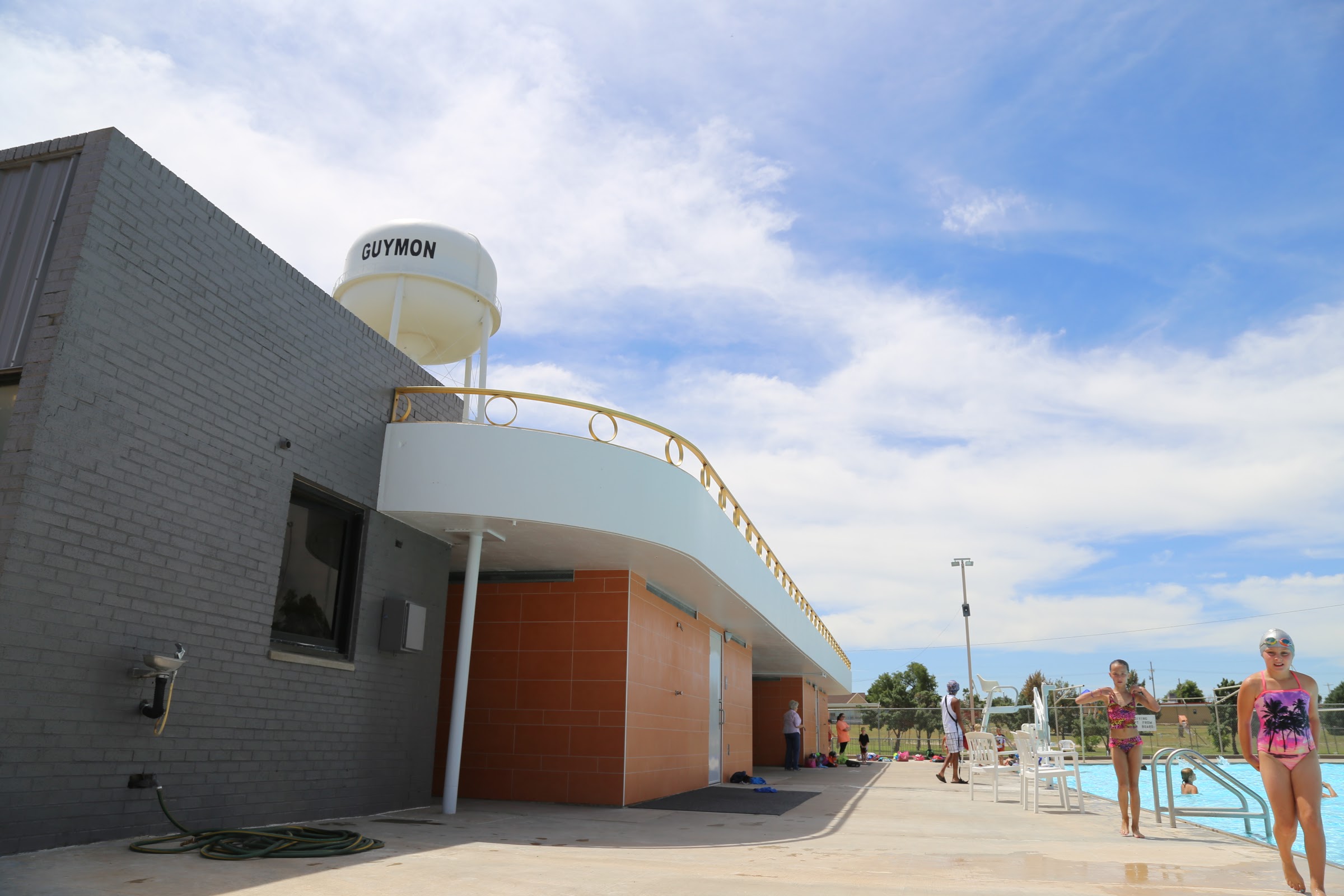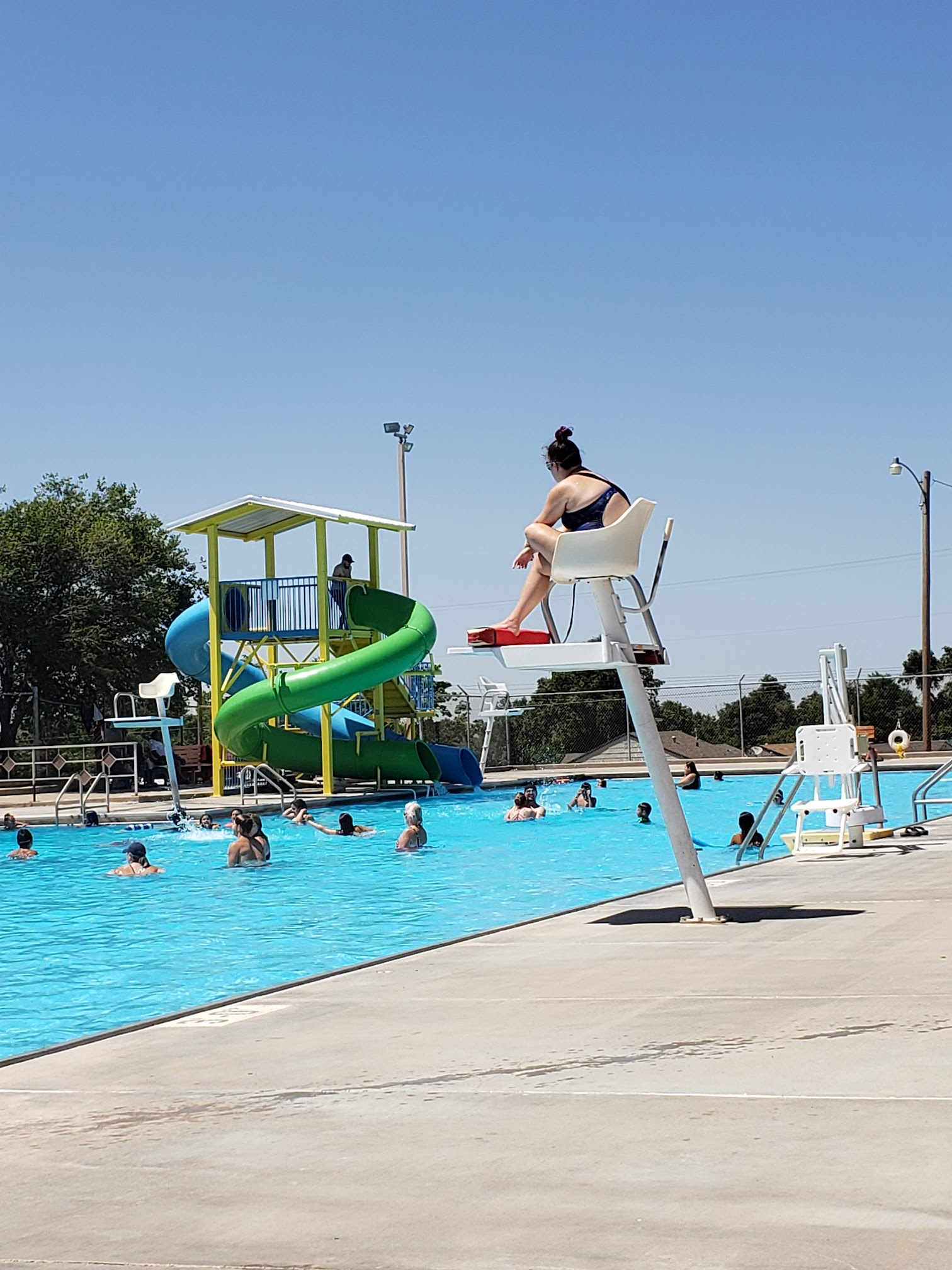 The Guymon Public Pool, located at 1420 N Crumley St, Guymon, OK, operates seasonally, typically from Memorial Day to Labor Day. It serves as a community recreational facility offering open swim sessions, swimming lessons, and private party rentals. The pool features a large main pool with a diving board and a separate wading pool for younger children, complemented by restrooms and changing facilities.