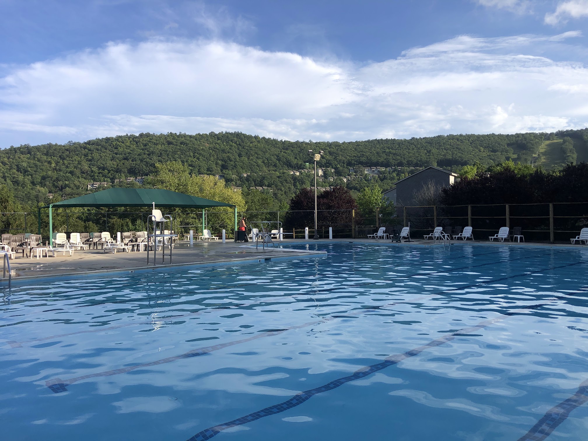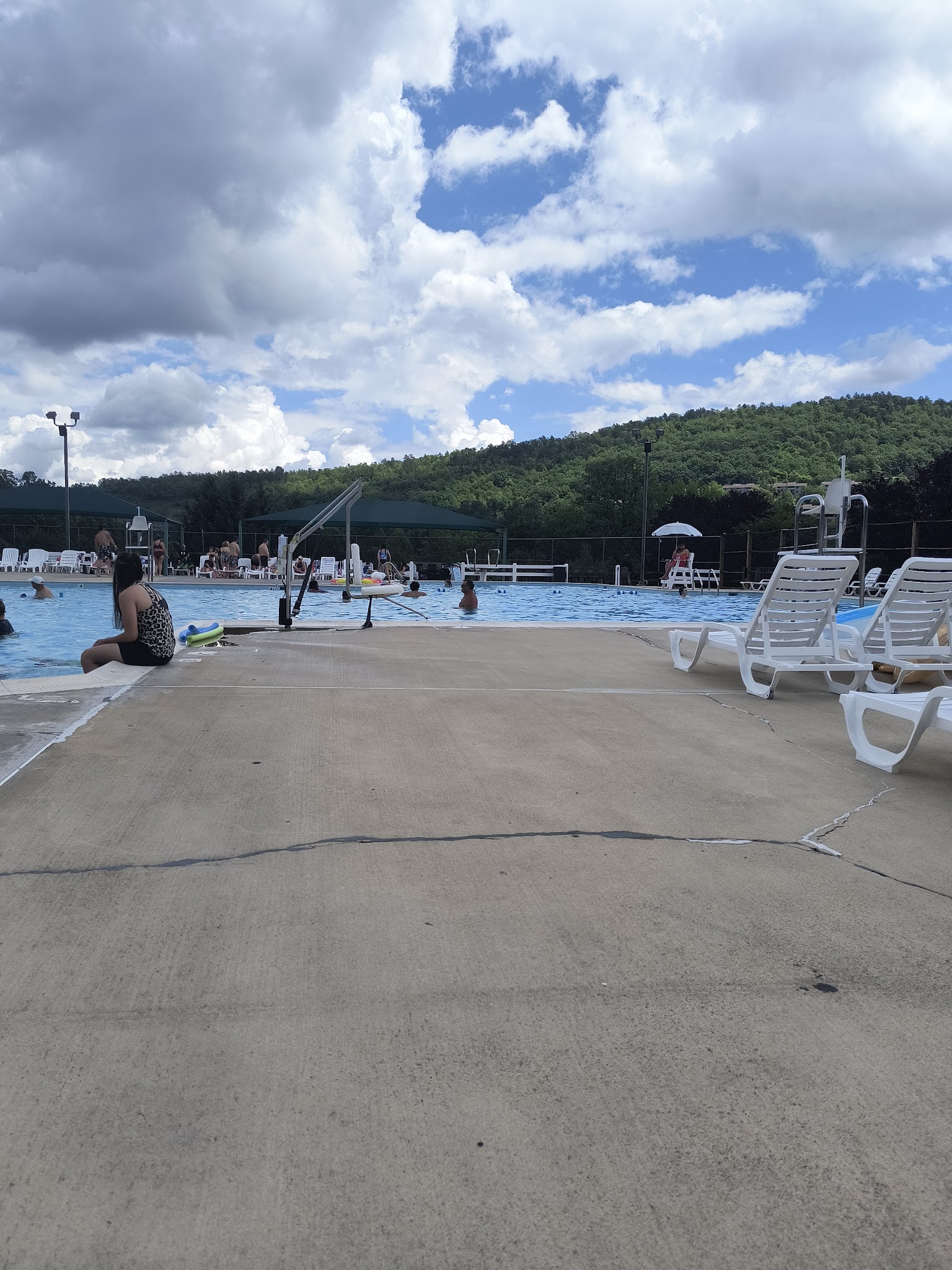 What are people saying (AI review summary)? This is a highly-rated, large, clean, and well-maintained pool with attentive and focused lifeguards, good water chemical management, and satisfactory changing facilities. It features a diving well, a dedicated kiddie pool with a mushroom waterfall, and a snack bar. While it can be busy and crowded during peak times with somewhat limited shade, there are plenty of chairs and loungers, and adult swim times are provided.