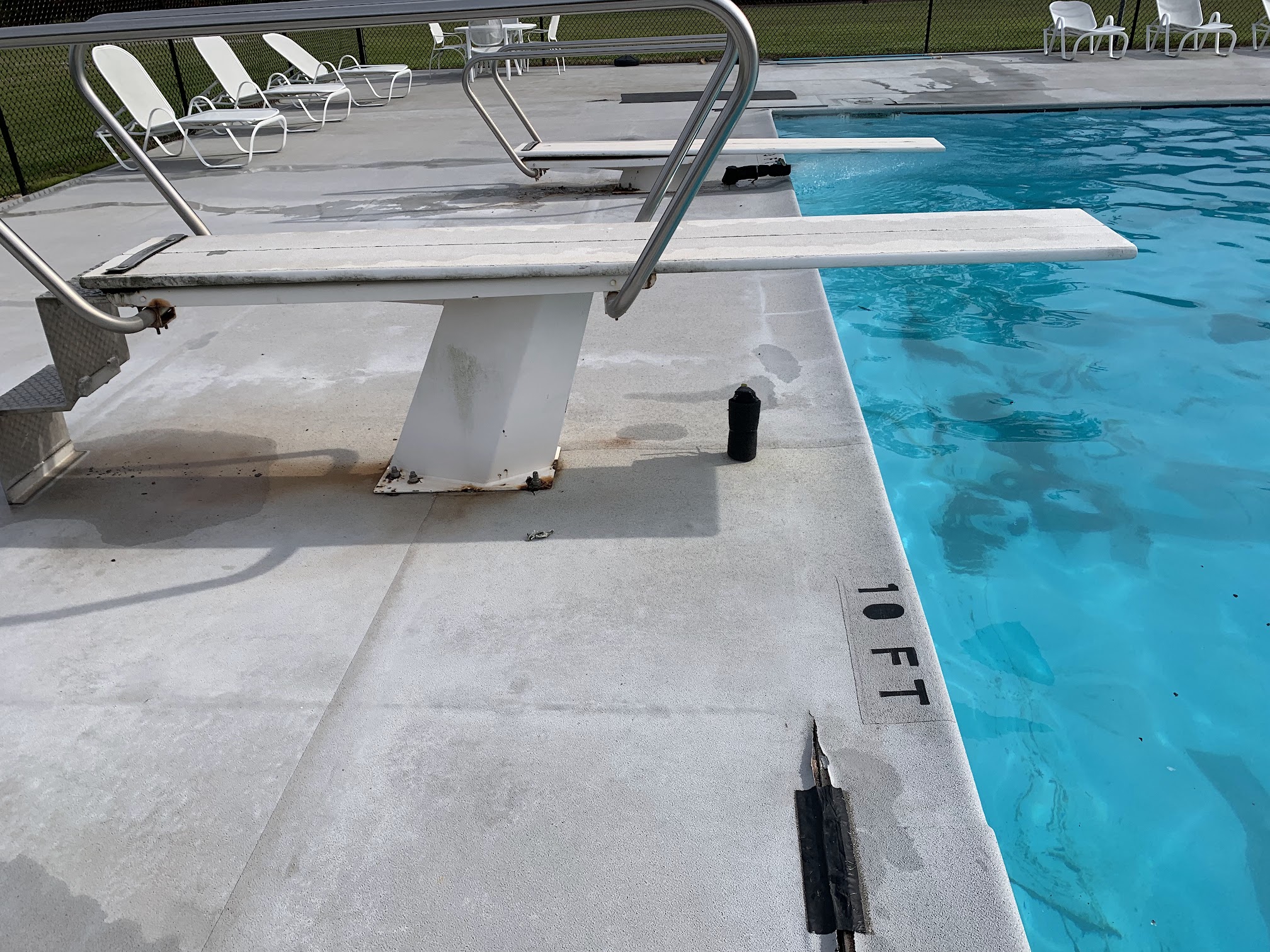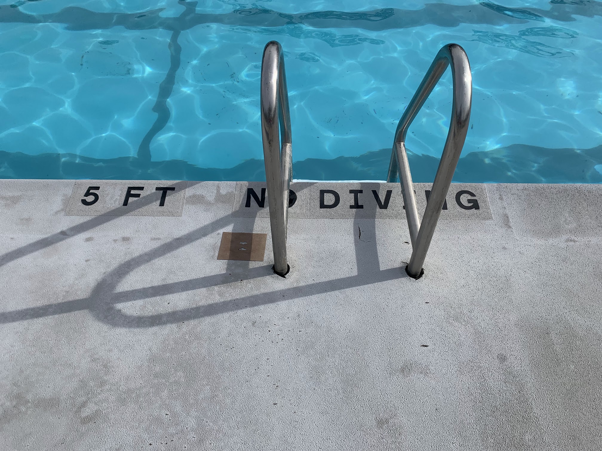 6/6、6/7 Check with lifeguard, swimming pool available from Tuesday to Saturday and 1100-1900 Have fun😊 5/28 It actually opened today, and I asked the lifeguard, it will be available tomorrow 1100-1900. But we’re not sure if there will be the lifeguard available in the following days.(it should be) I asked the gym staff today, swimming pool “should “ be open at next day after Memorial Day 5/24 有詢問在游泳池的人,有提到開啟時間為0600-1900(6AM-7PM),需要跟健身房櫃檯借鑰匙🔑 明天嘗試後跟大家分享 目前確認游泳池有男女生的廁所與淋浴間,另外泳池的水深從120cm(4ft)到300cm(10ft),長度約25公尺,所以以游泳來說沒那麼大,不過在10ft的地方有2個跳水的跳台,可以享受跳水的樂趣,並且水深足夠深,可以放心的玩。