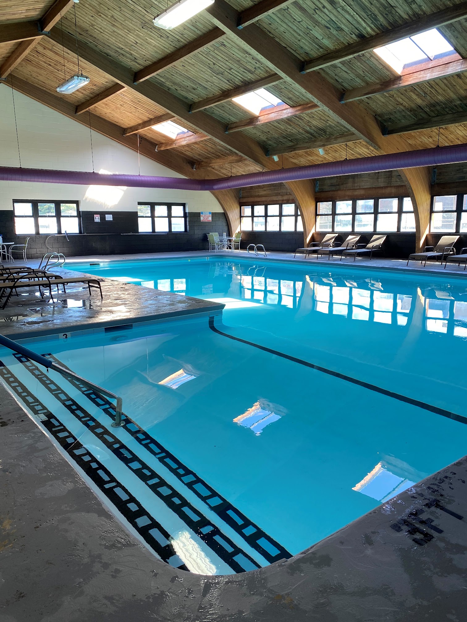 The club features three pools. The indoor pool is maintained at a comfortable 84 degrees Fahrenheit year-round. During the season from Memorial Day to Labor Day, both the outdoor pool and the kids' splash pool are kept at 80 degrees Fahrenheit.