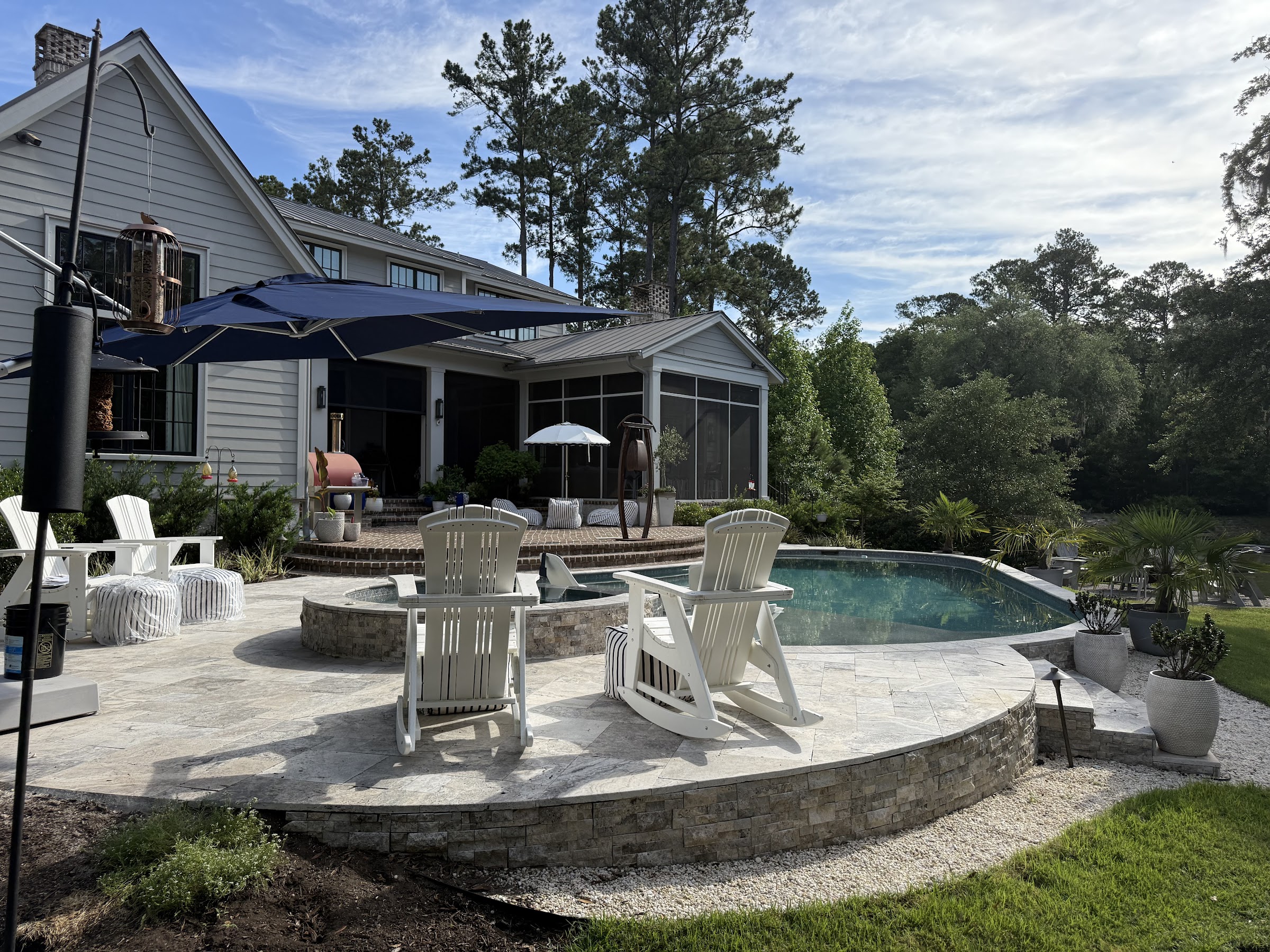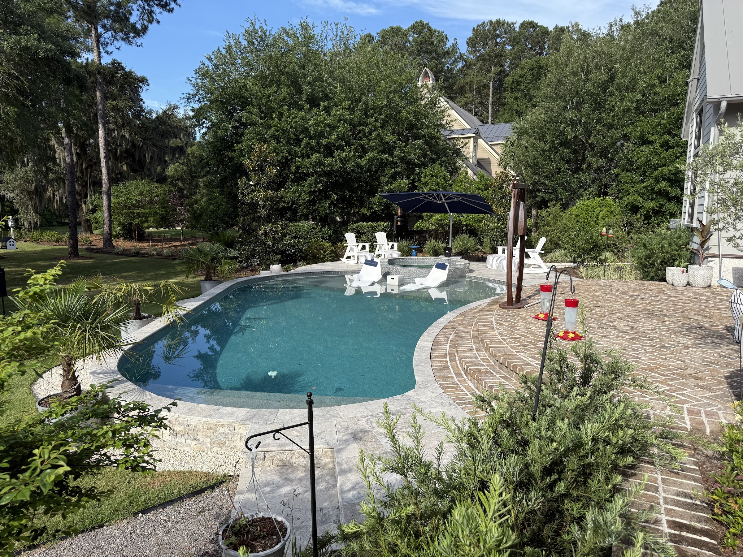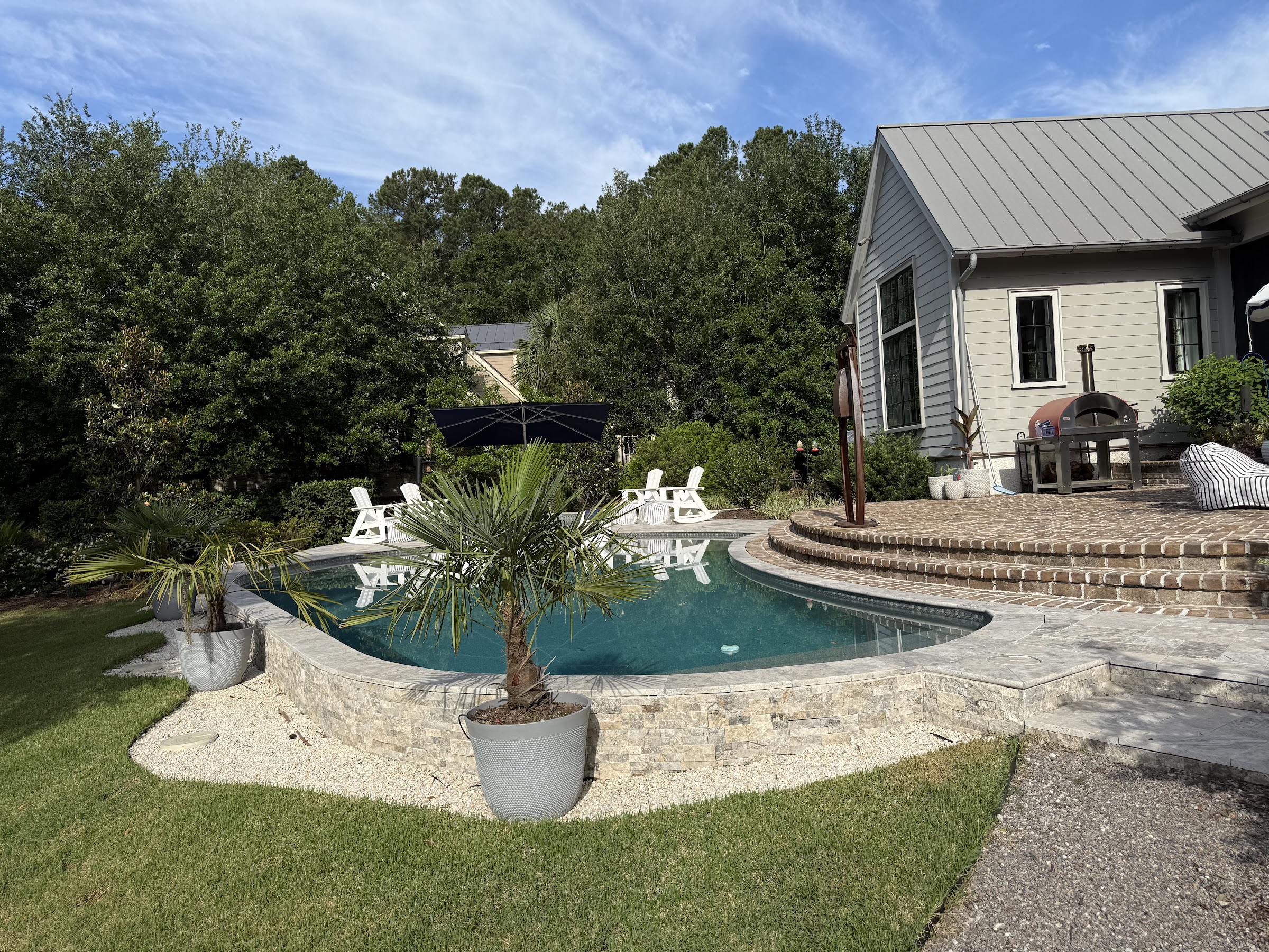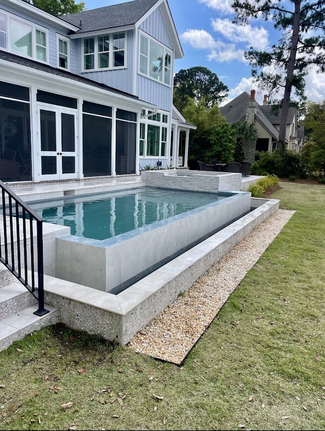Kudos to Erik and his team at Innovative pool & spa! The company name perfectly exemplifies the design that Eric created. He had to work with an existing rounded shape patio with steps down to the grass and also has to contend with the setback properly line restriction which was on an angle! We could not be happier with the end results! Shout out to Stephen for his patience with an amateur new pool owner. He is skilled at his craft..2nd to none! THANK YOU Team Innovative🙏 Brian & Liz Grell, Palmetto Bluff
