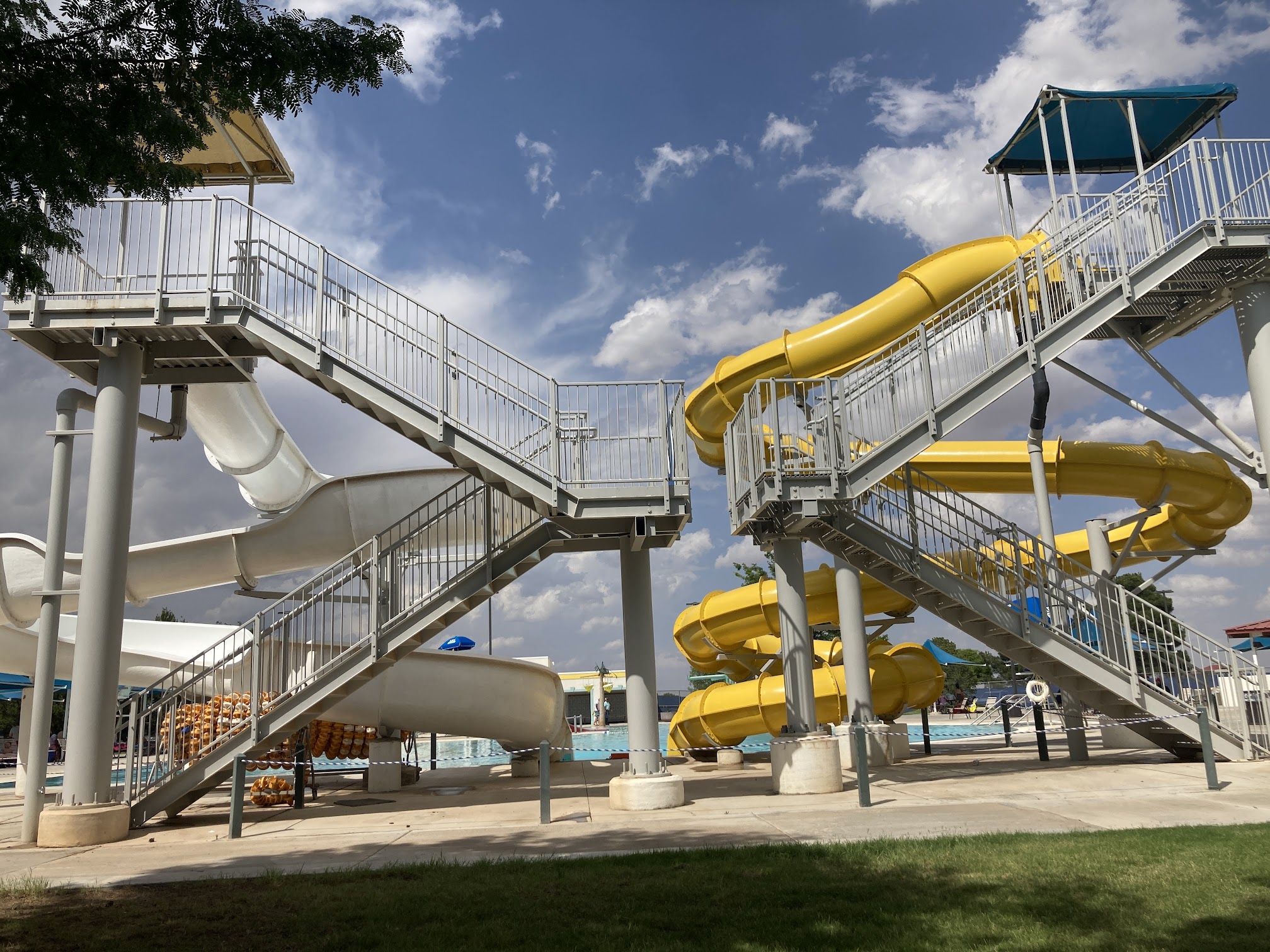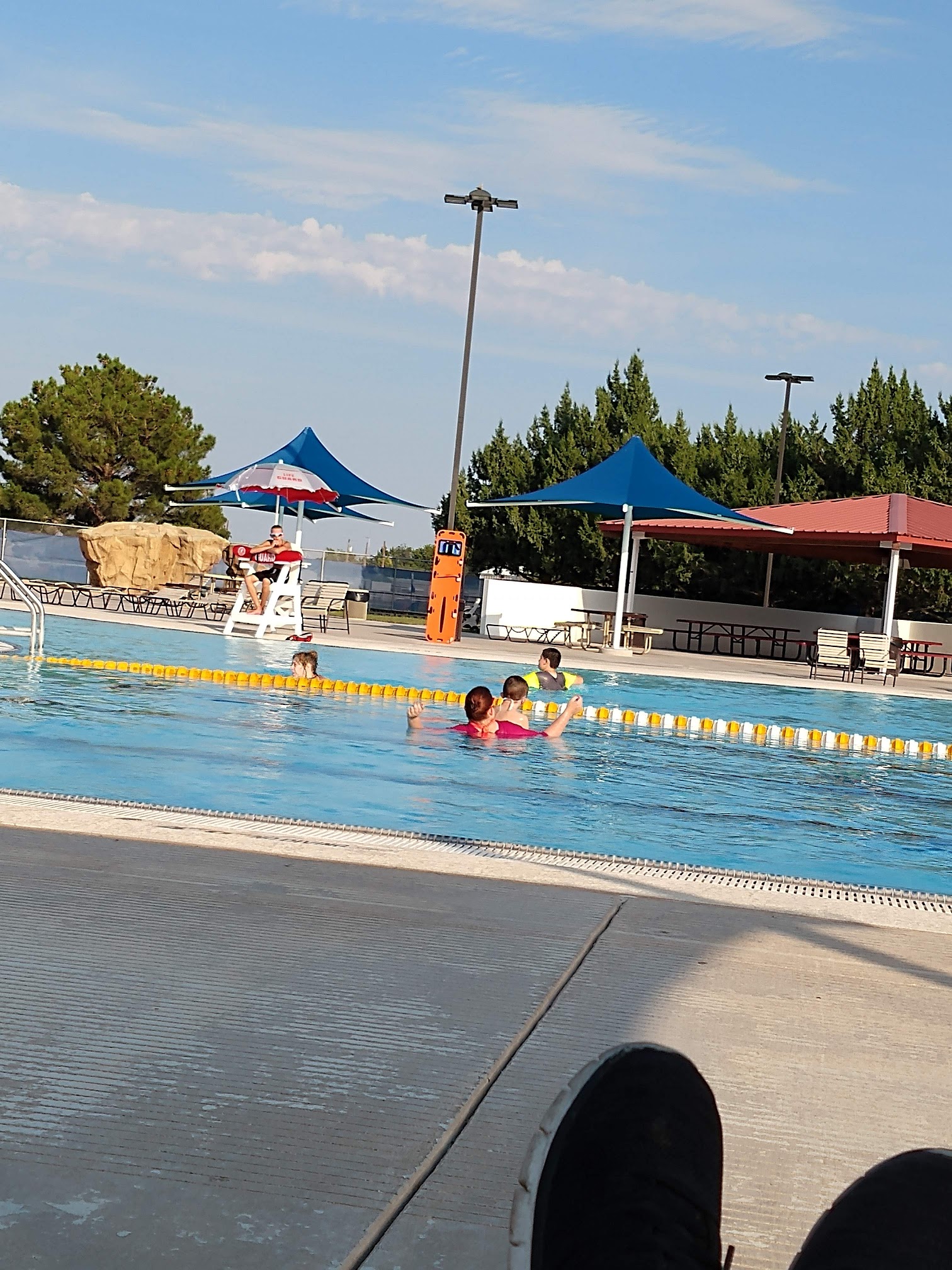 Great family pool. Fun for all ages. I love that it is not deeper than 4.5 feet in any area of the pool so watching your kids is much easier. Bring a lunch and have a picnic. Plenty of tables and seating.