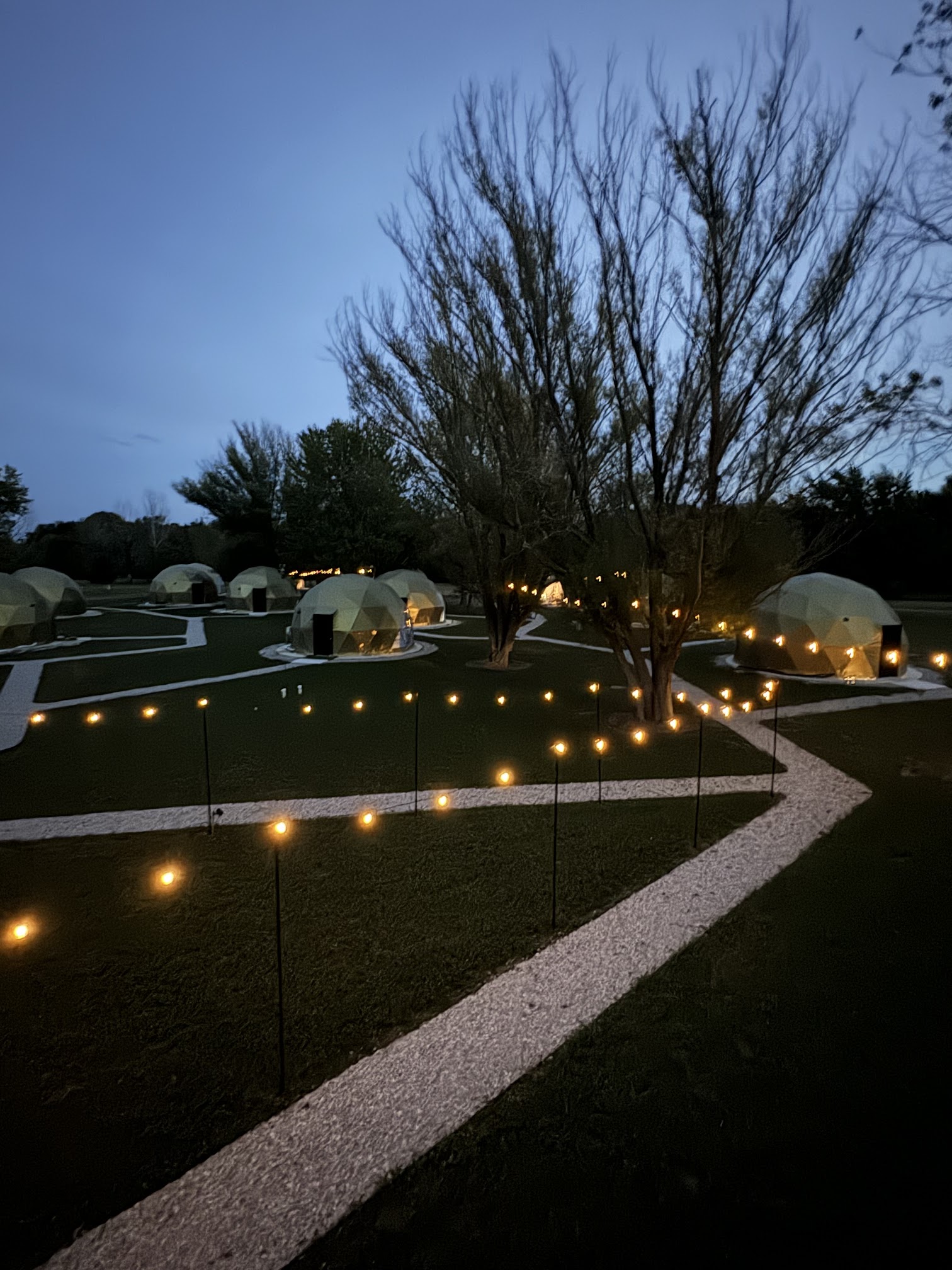 Staying in our dome with the twinkly lights and airy feel was a delight. The dome was very clean, the beds were nearly a perfect comfort level for me personally, and it was just a fun place to relax in at the end of a day at the beach. The owners have clearly put a lot of thought into everything, including the surrounding grounds, which have a great pool area with lounge rooms, disc golf, walking paths, ponds, a spa, and a bar. Overall, a really cool property that seems to be a labor of love.