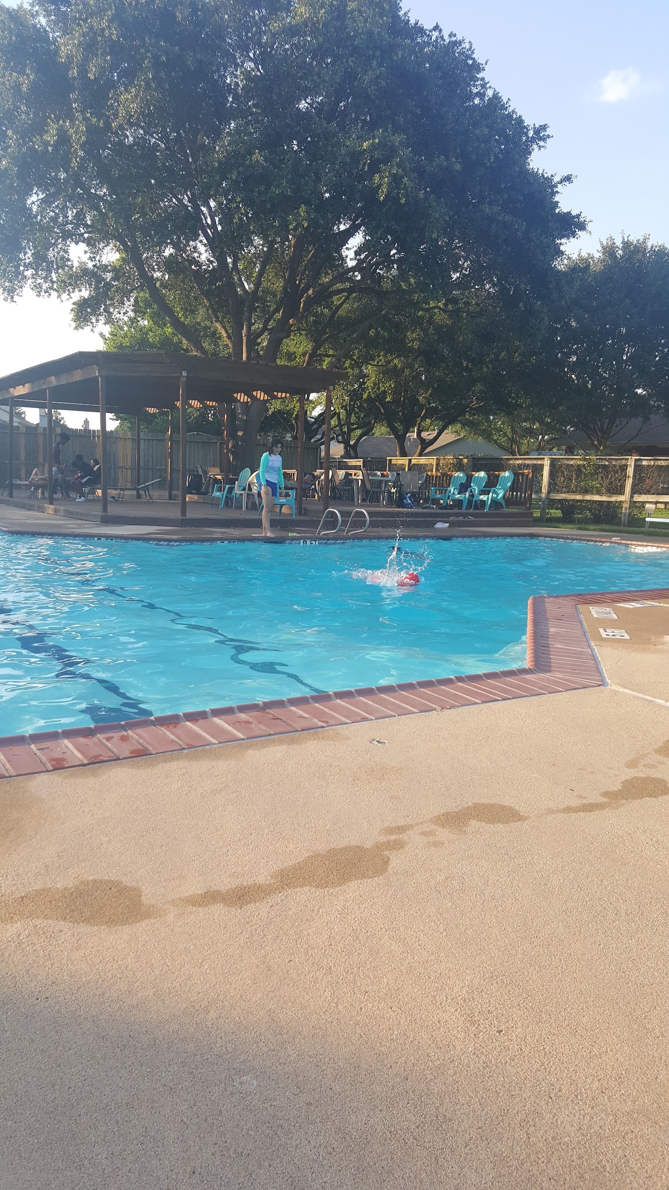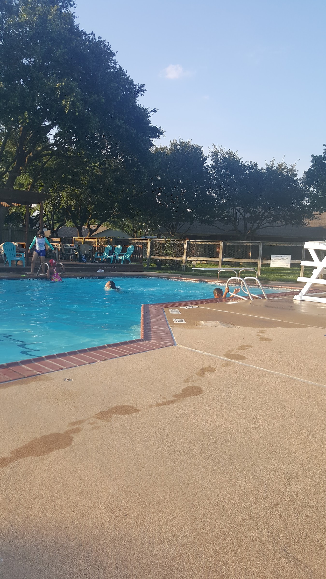 Great pool, lifeguards are always there. It's got a diving board and it's 10 feet deep...we all had lots of fun.