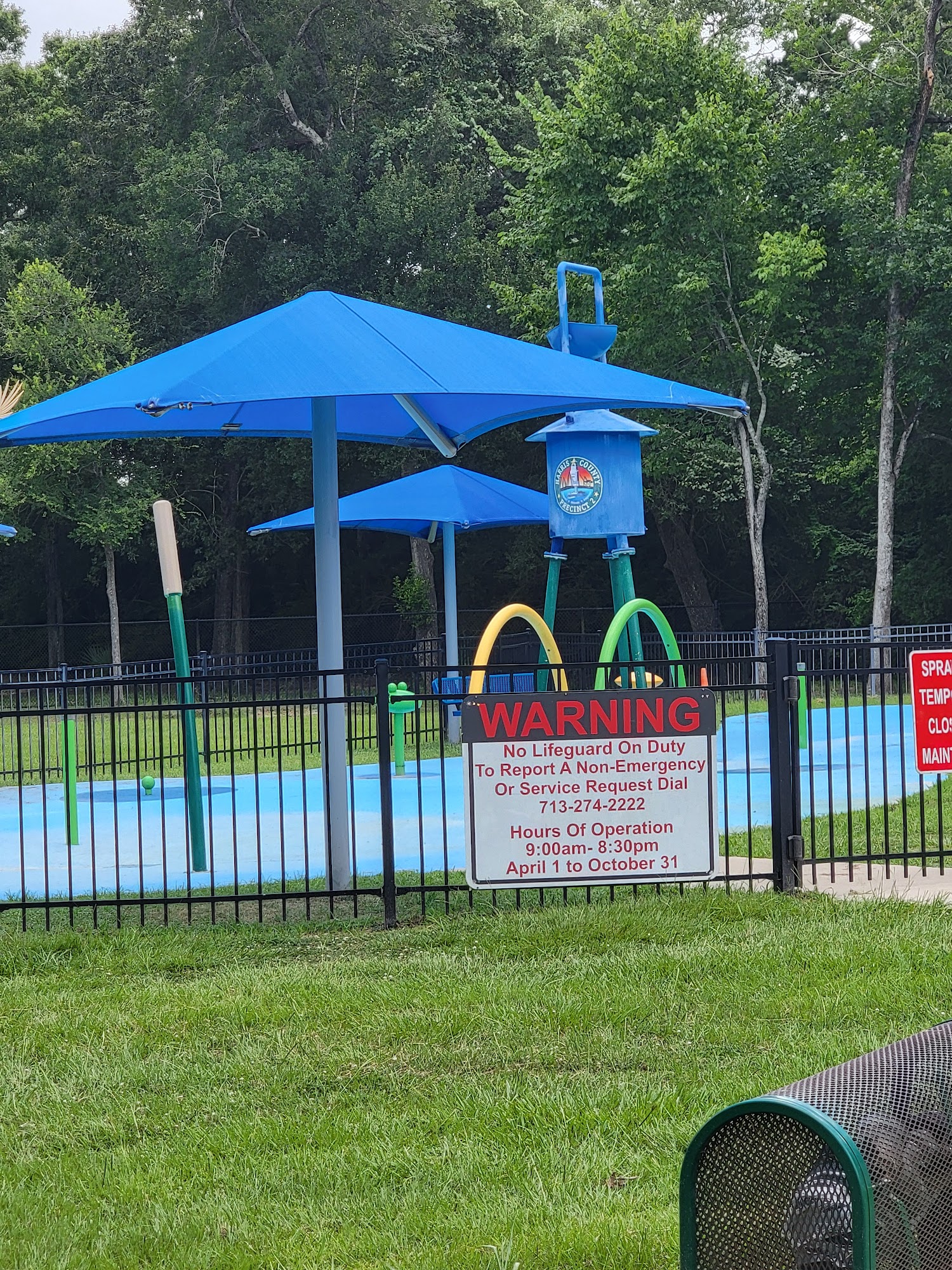 Splash pads, including Bay Area Park Splash Pad, typically use unheated municipal water. Therefore, the water temperature is not regulated and will vary depending on the ambient air temperature and ground temperature, usually ranging from cool to refreshing, especially during hot Houston summers.