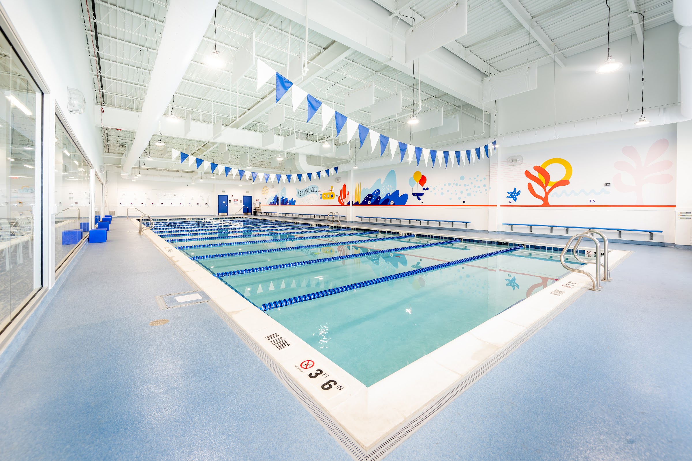 Big Blue Swim School at 18321 W Airport Blvd, Richmond, TX 77407, USA, offers swim lessons for children from 3 months to 12 years old. The facility features large pools, comfortable viewing areas for parents, and employs progressive lesson plans focused on water safety and swimming skills.