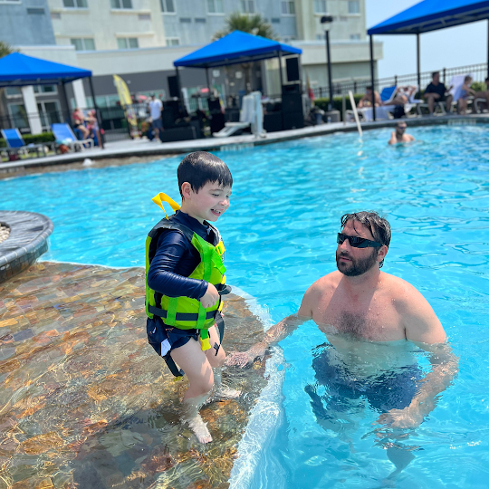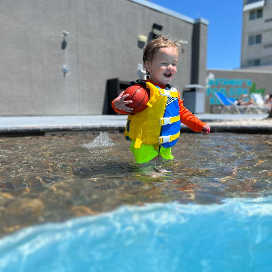 Paradise comes to mind. A family or solo experience can be made better by time here. Pool towels n shower. Cabanas for rent but there are plenty of chairs n seats in shaded spots for free.Drinks n food out by the pool feels luxurious. TY 😊