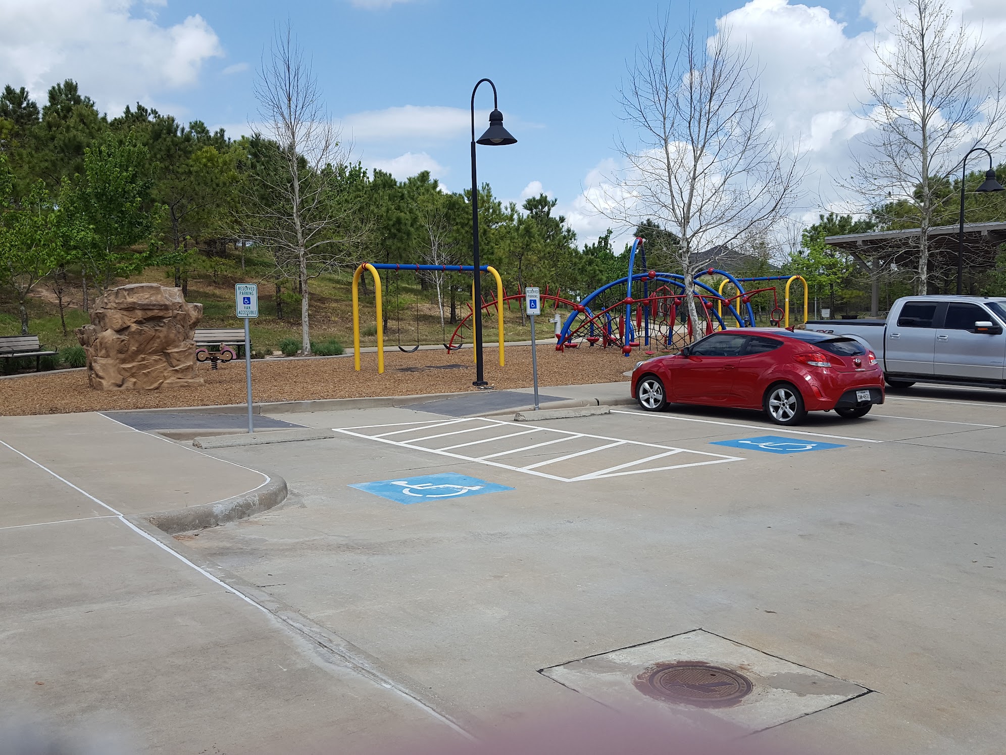Beautiful park and views! The playground is not for little kids. Maybe for kids 5 years and up. This place has parking lot, a water fountain and some tables and chairs to rest or read.