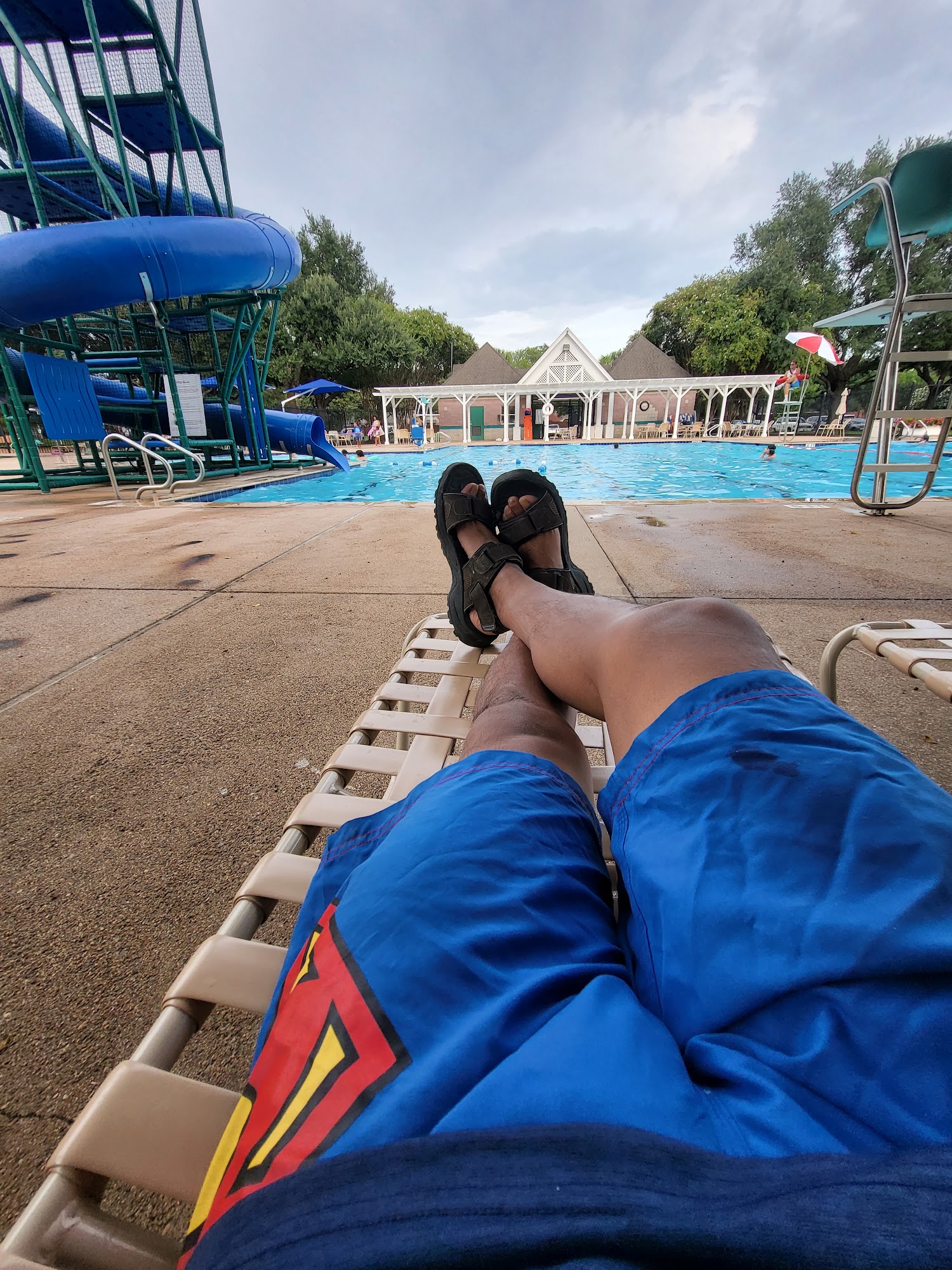 Fun place for audits and children! There Is a slide (need to be able to pass a swim test), lifeguards, deep end (11 ft which is type off for those that can pass swim test), toddlers pool which is covered and 1.5 ft deep. There are a restrooms to change and use the facilities for a bio break.