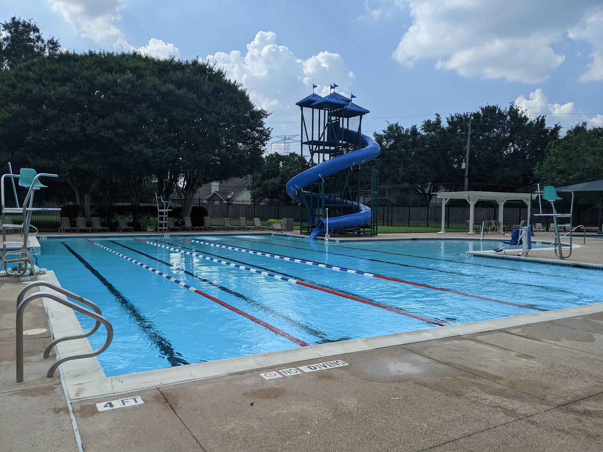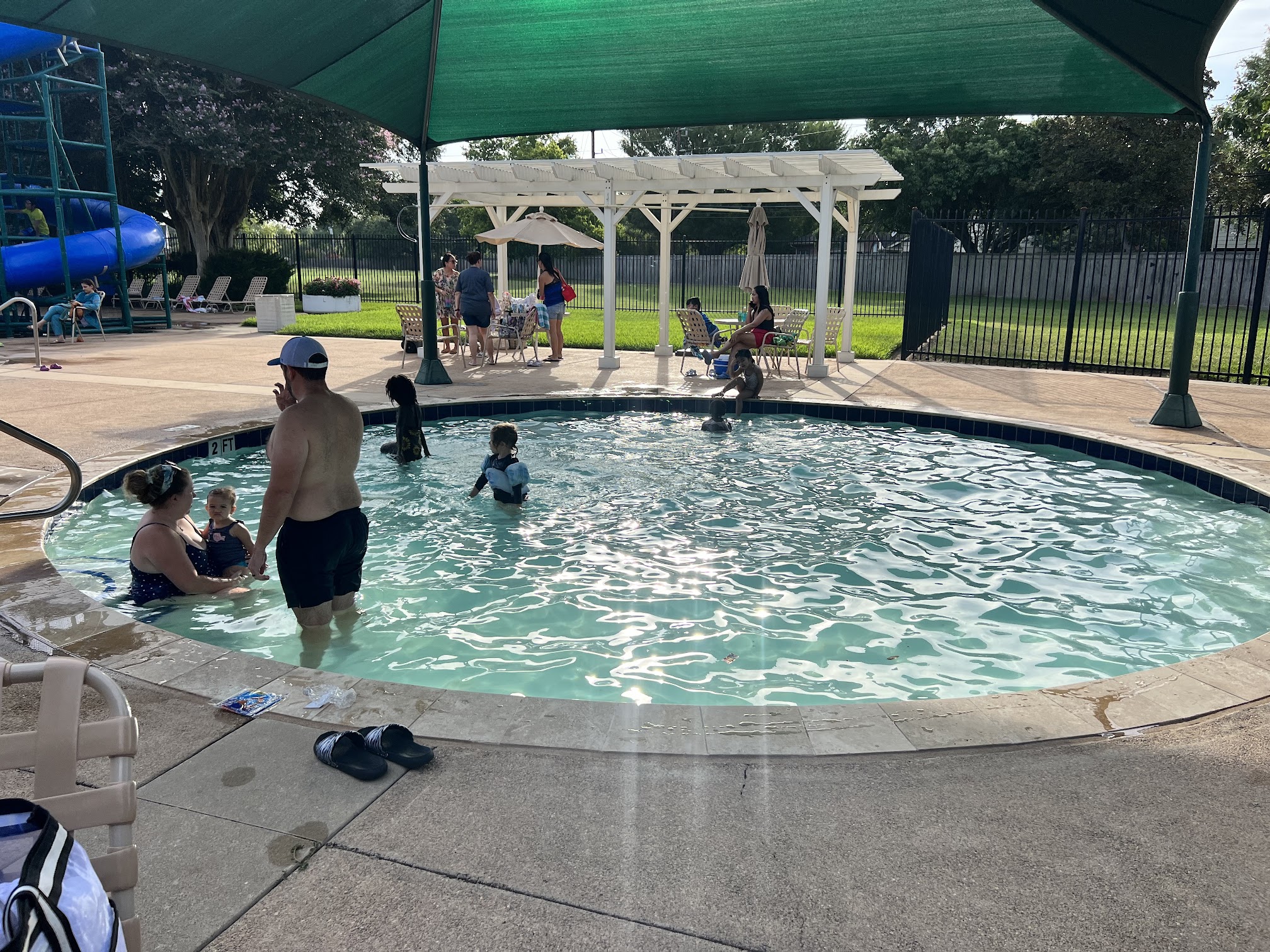 What are people saying (AI review summary)? This community pool is largely praised as a fun and great neighborhood facility, with some considering it the best among four clubs. It offers amenities for all ages, including a slide and an 11-ft deep end (both requiring a swim test), lifeguards, a covered 1.5-ft deep toddlers' pool, and a splash pad. Restrooms and changing facilities are available. However, common criticisms include it being not well-staffed and occasionally dirty.