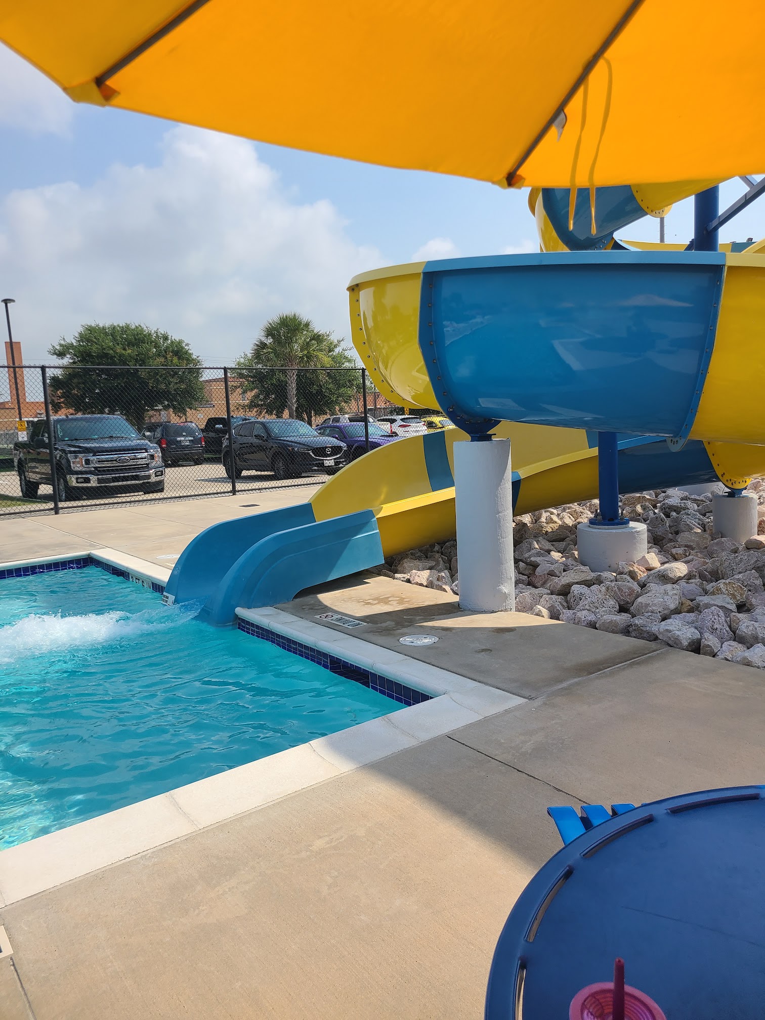 Wonderful little community pool! We enjoyed our Saturday morning here. Two small slides & shallow areas for smaller kids to play. They have 1 large water slide for older kids. Staff was friendly. It was only $5/person for the day for locals. Kids 2 & under are free. They offer a pass for the year, but you would have to go a lot. They have drinks and food for purchase. There are There are plenty of shady tables to eat. The lines did move slowly to enter. They do offer swim classes & swim lessons for kids 3 & older. We will definitely return for another fun swim day!