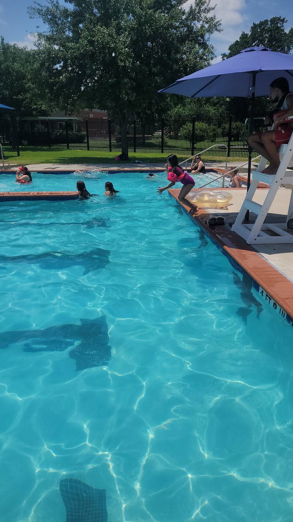 There were 3 life guards on duty that were very watchful and kept everyone safe around the pool. The facility is clean and not overcrowded. It’s $2 to per person to enter even if you are not swimming. My son enjoyed the splash pad. There were ladies selling slushes, drinks and chips. There are plenty of benches with shade. This a fun and beautiful summer gem in the neighborhood.