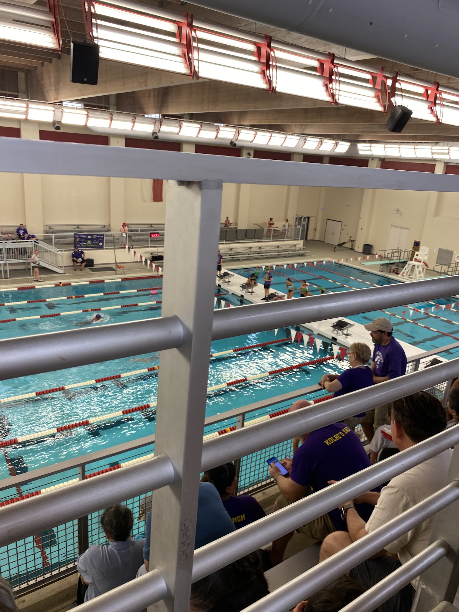 Clean indoor pool venue for swim meets as well as tennis courts and clean spectator bleachers.