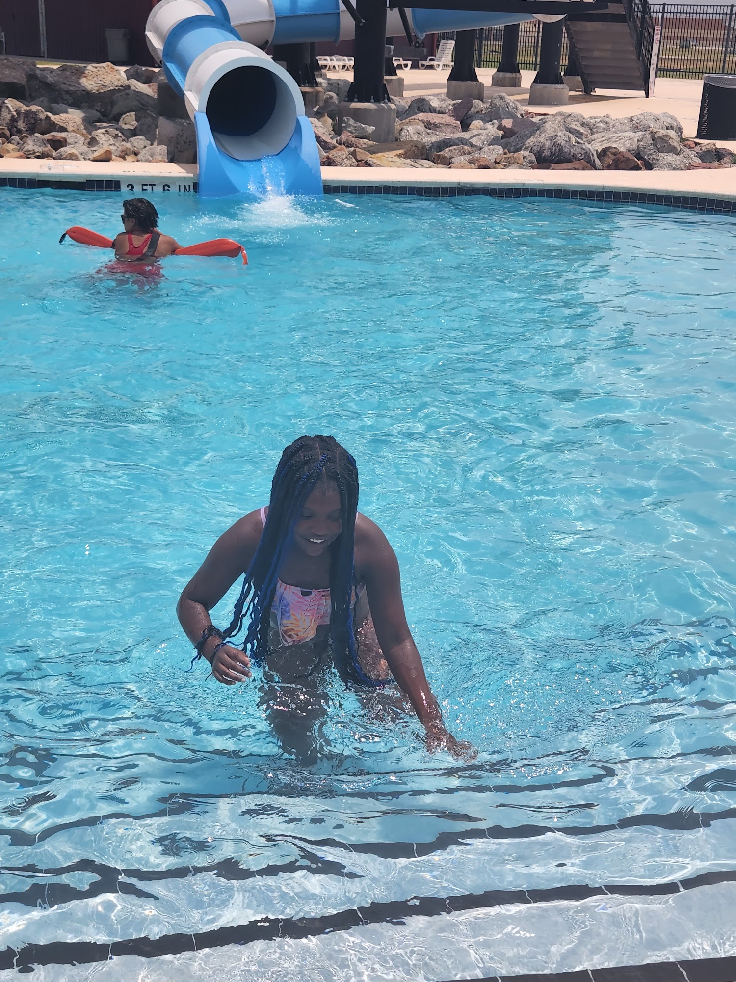 My first visit & I was very impressed. Prices are great, kid friendly for all ages, clean & well kept, attentive lifeguards, great place! Music was just a little loud. Good variety of music tho.