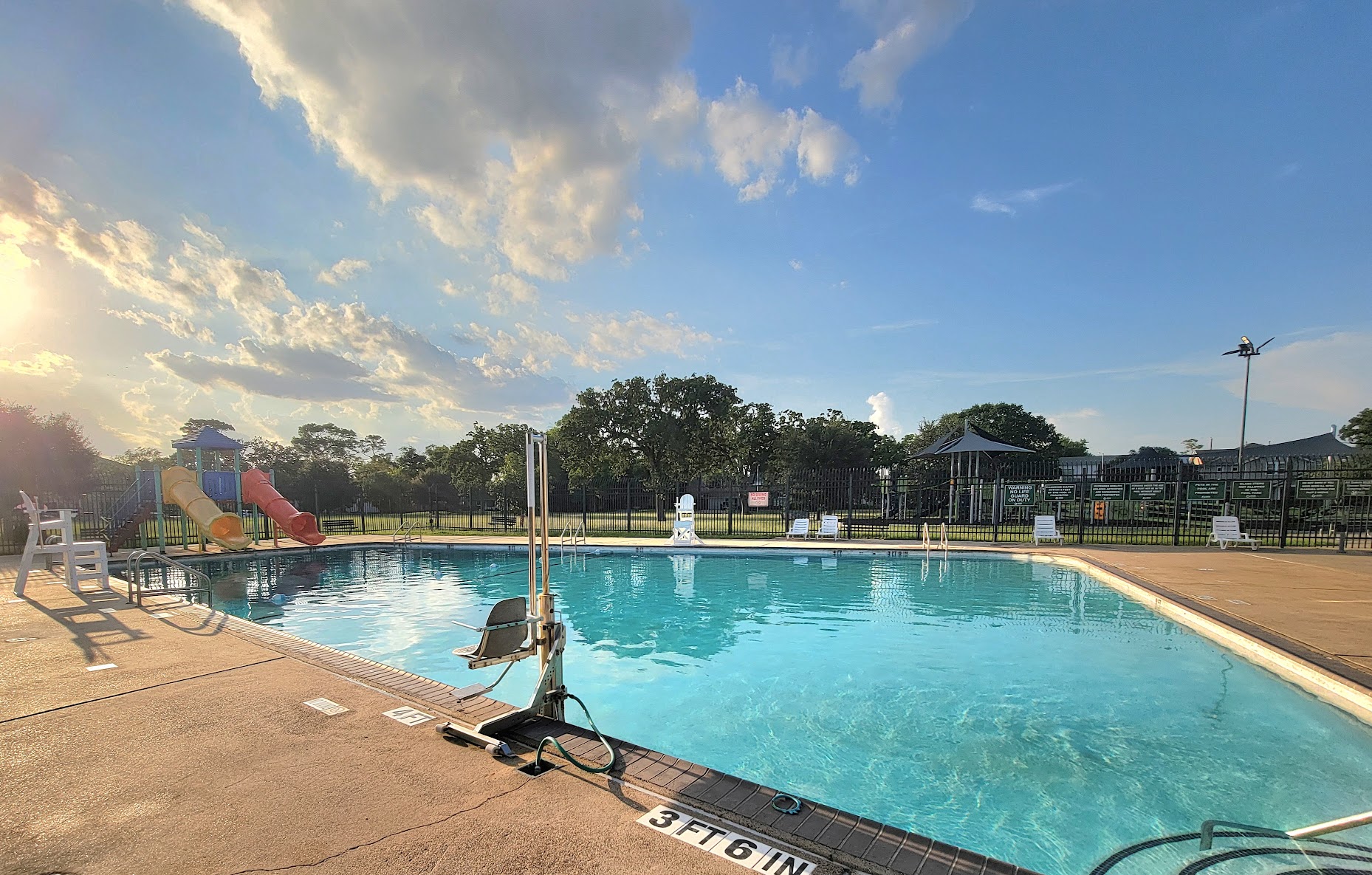 What are people saying (AI review summary)? The pool receives mixed reviews, with some praising its physical attributes like its nice width, good length (3-10 ft depth), and relative cleanliness despite being an older facility with chair lifts for disabled access. It's generally not too busy. However, there are significant complaints about the accuracy of its advertised opening hours, with many finding it closed when listed as open. Weekday public access is very limited (7 PM to 8 PM) due to children's swimming lessons, leading to requests for clearer communication of these schedules. Weekends are reported to be excellent and open to everyone. Other facilities include an older playground and a small parking lot, with street parking available. Free water fitness classes are offered by the city of Houston during summer. One review notes a potential re-opening or seasonal start in June 2025, and there is no baby pool.