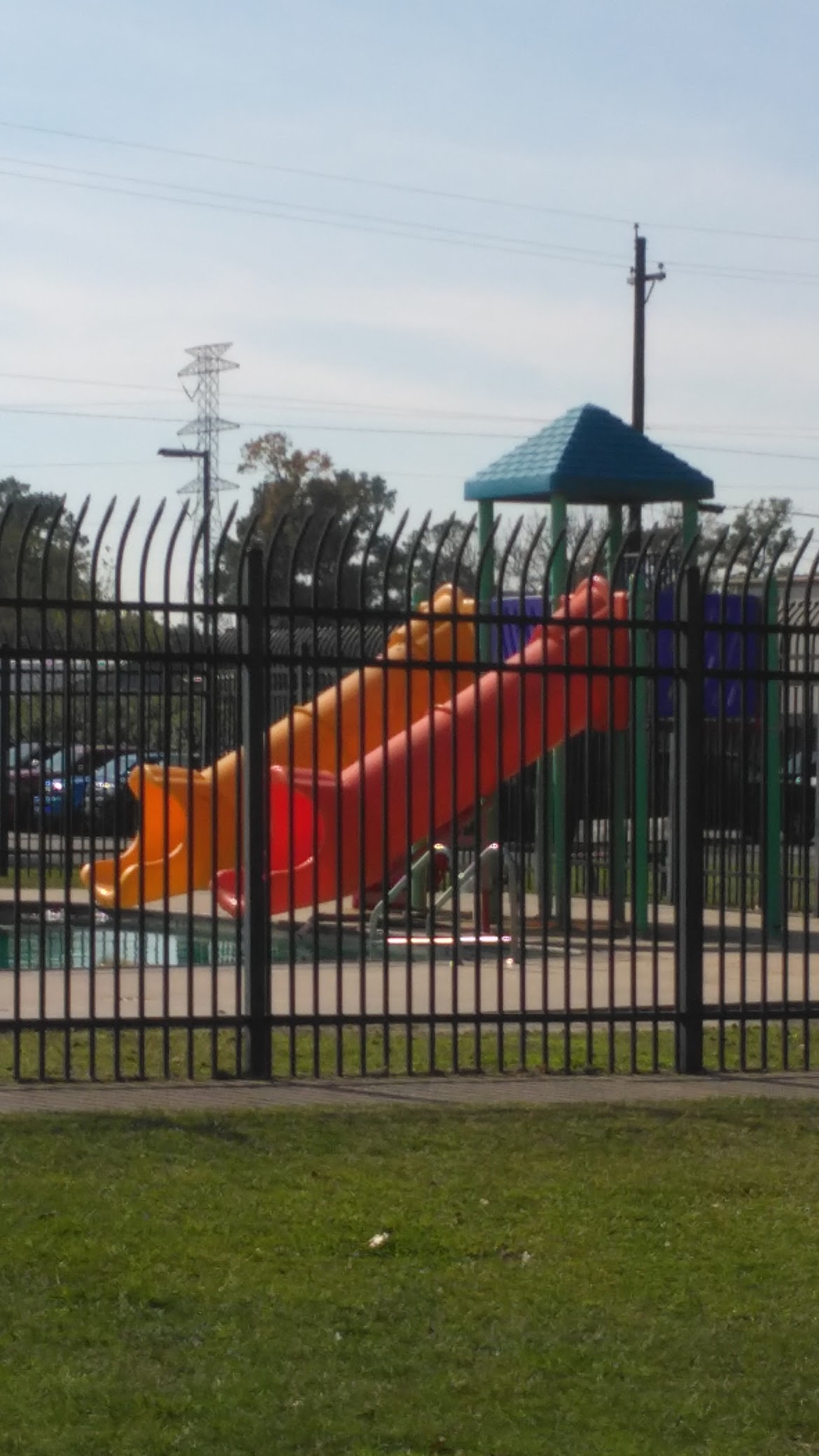 Public swimming pool, also featuring a playground.