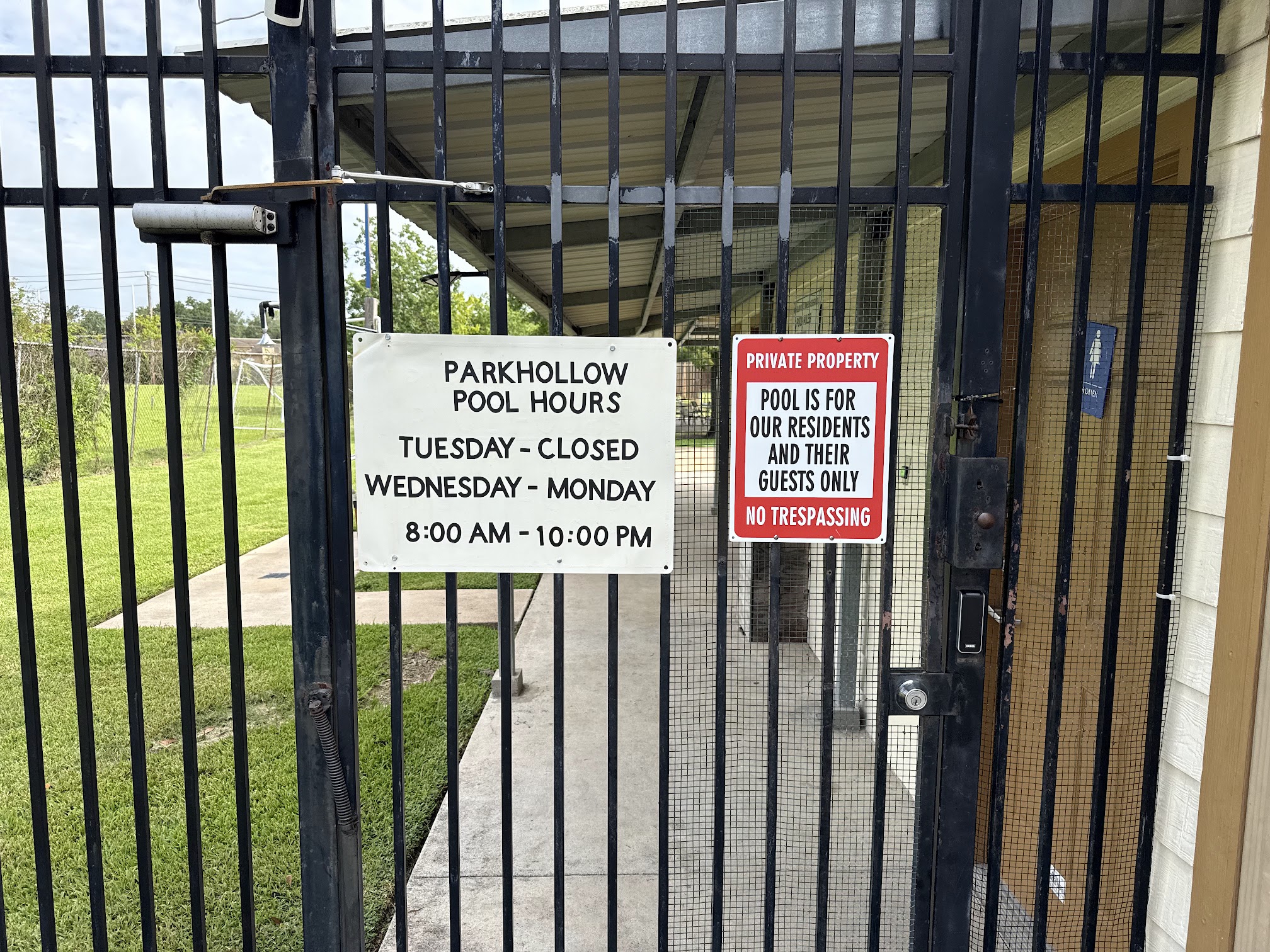 Parkhollow Place Pool. You must be a member of the HOA to use this pool, but it is no longer a lifeguarded pool. It is now swim at your own risk during daylight hours. Great spot to cool down in the summer for the neighborhood