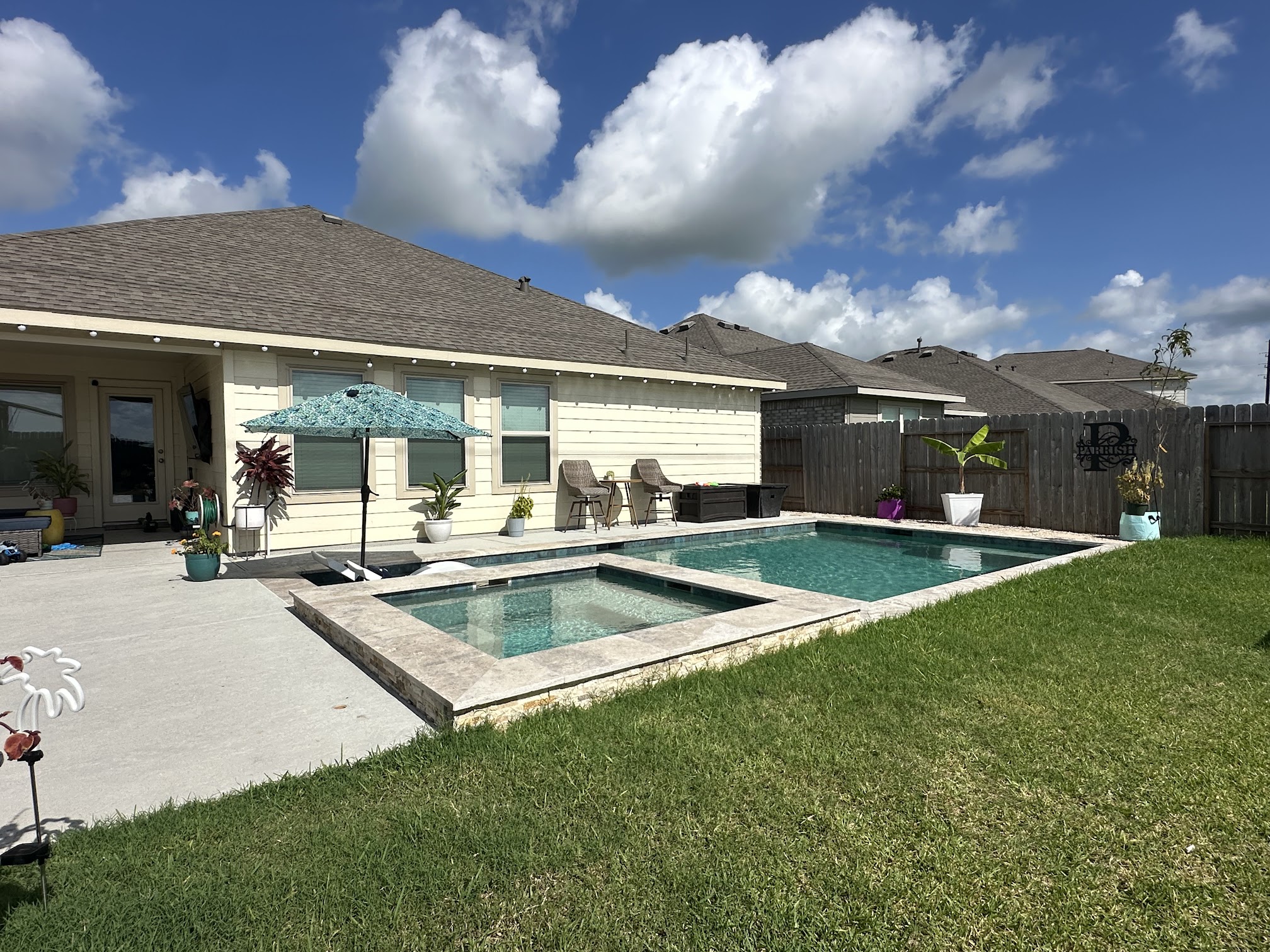 Parrish Paradise, located at 27011 Winward Creek Trail in Katy, TX, is a luxurious and spacious private estate often available for short-term rental. It is characterized by its resort-style amenities, including an expansive backyard with a large swimming pool, an integrated spa or hot tub, an outdoor kitchen, and fire pit. Inside, the property typically features multiple living areas, a gourmet kitchen, game rooms, and media rooms, making it an ideal destination for large families, group gatherings, or special events seeking a high-end, entertaining, and relaxing experience.