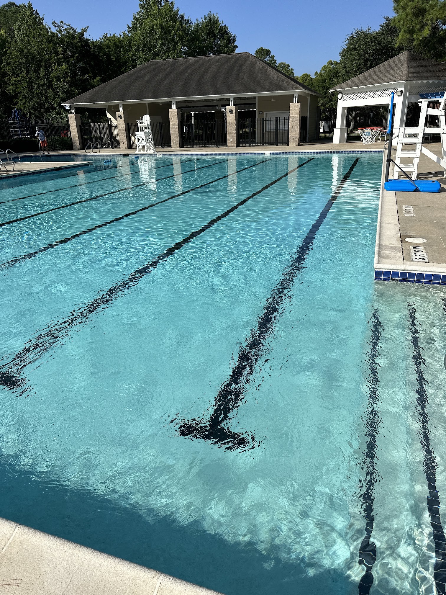 What are people saying (AI review summary)? The facility offers a variety of amenities including a community swimming pool, four tennis courts, a nature trail around a pond, a playground for kids, and a basketball court. The swimming pool is well-regarded for being nice, well-cared for, and having a large covered area with good seating. Lifeguards are consistently described as professional and serious about their job. While the pool and facility are noted to show some age, it is still considered a great option for families. The tennis courts are well-maintained, though they are observed to play a bit slower than most hard courts.