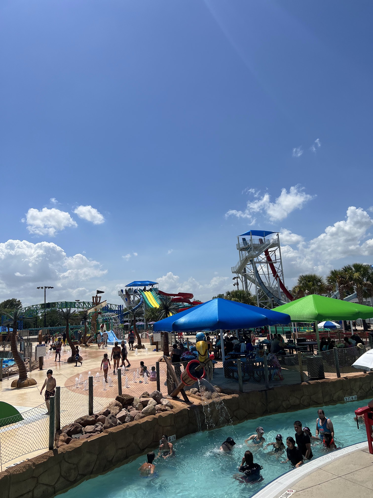 First time here and loved it! Very clean and inviting. Lots of lifeguards and crew on the grounds. Get the $7 refill wrist band! Food is great and reasonably priced. We will be back! Big and little slides for ALL ages. Water is not over 4ft in swim areas so that is nice with kids!
