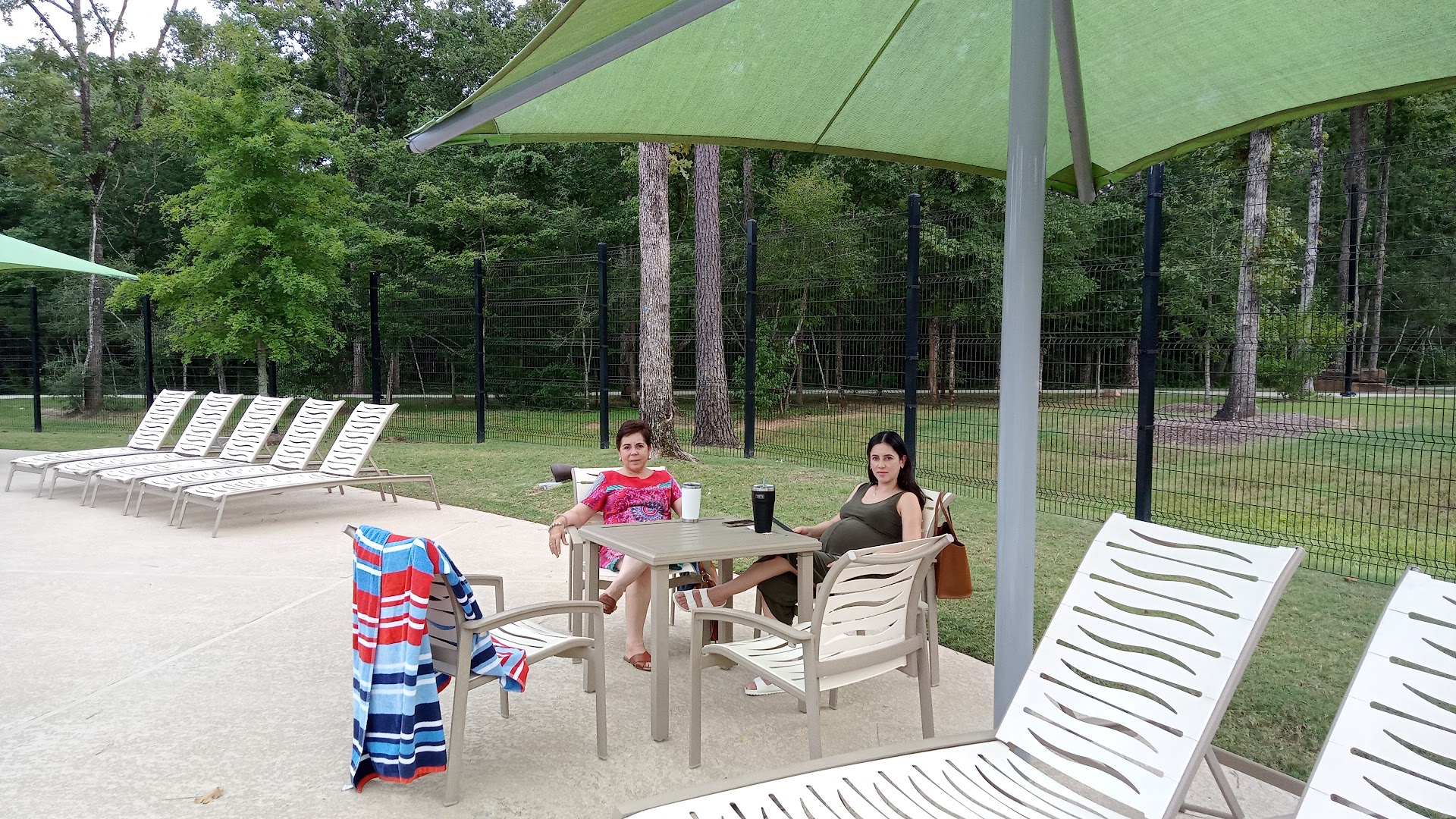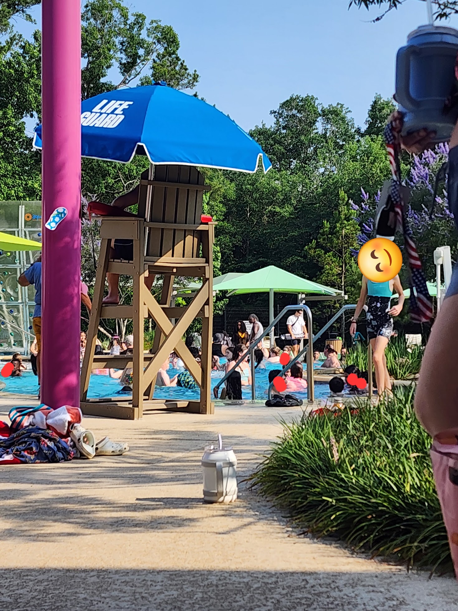 Love this pool! The kids love climbing the rock wall in the deep dive pool while the hubby and I relax in the lazy river. My older boys and I come to the fitness lap pool often for our swim workout. Plenty of tables with umbrellas and loungers to kick back on, and love how the entire pool area is surrounded by trees. Overall awesome pools!