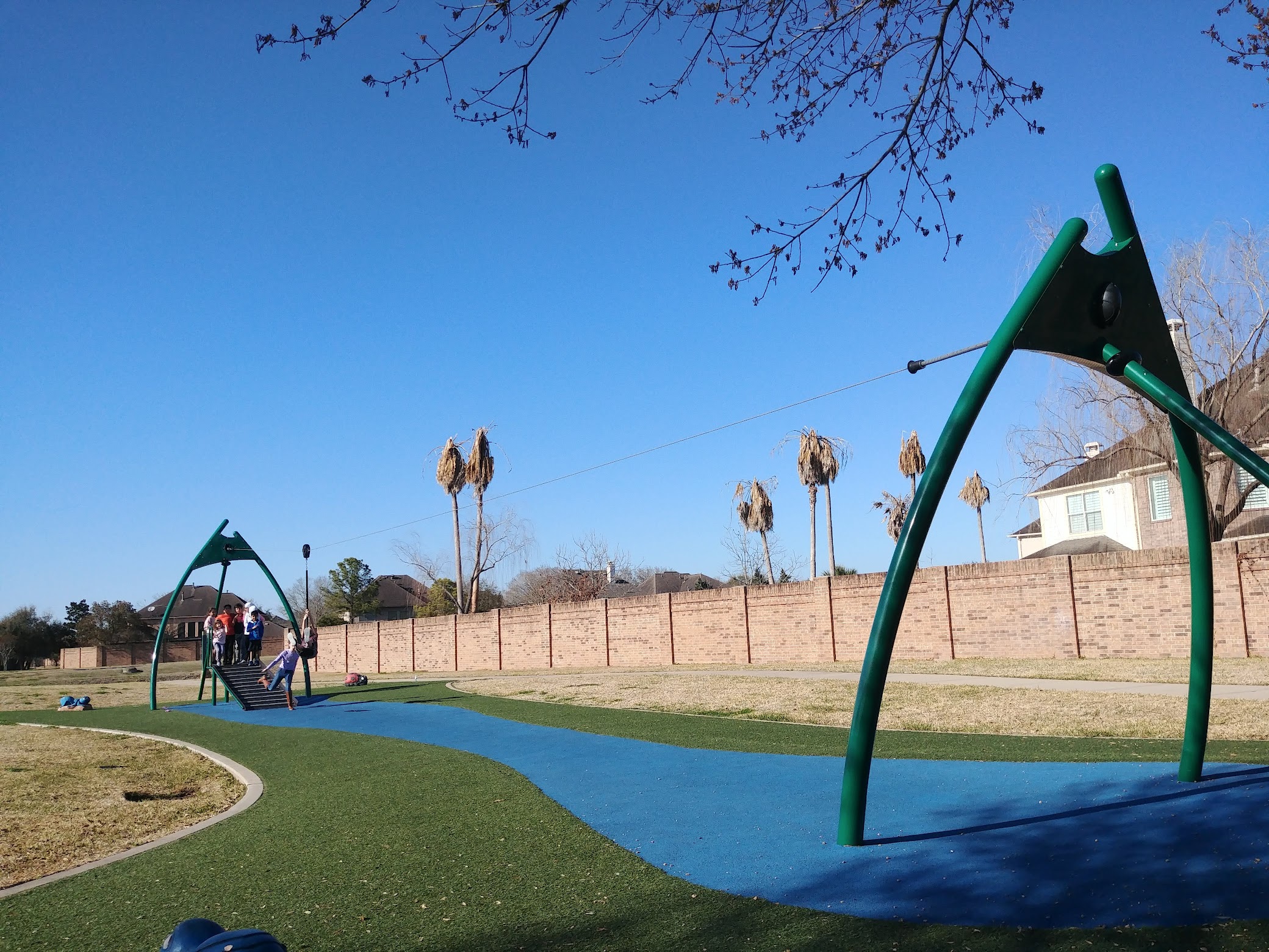 Larger than expected and super fun for my toddler! Loved the park and splash pad. Although we didn’t have access to the pool area, the park is worth the visit! Toddler section and big kid section in the park, a zip line area , pool, splash pad and picnic tables and benches. There’s also a trail , bridge and picnic tables to sit by the water fountain for a serene view!