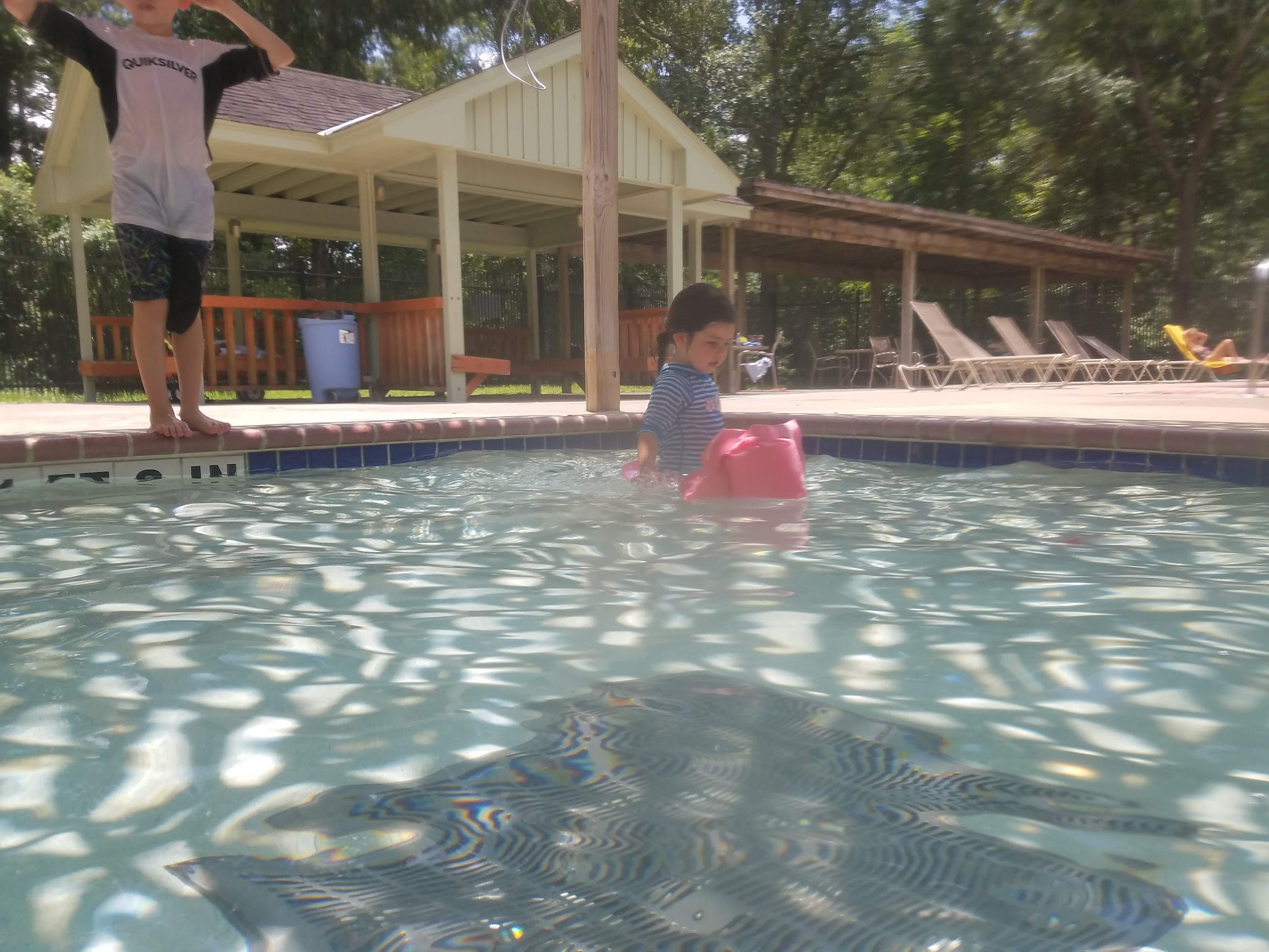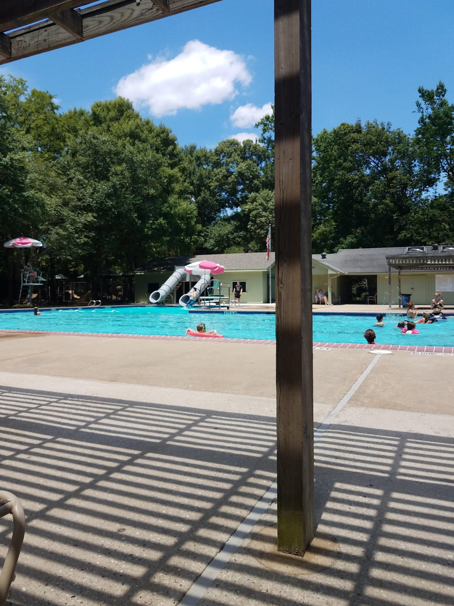 Not a bad pool. Good size, fun slides, nice kiddie pool. Was a little sad that the youngin couldn't go down the slide in her foam life jacket floaty. Nor could she go down with me. That was sad. But she's a brave toddler and went down solo, I'm sure much to the chagrin of the lifeguards. We'll obviously go back since it is our only choice around here. I might bring my own skimmer for the dead bees next time, though.