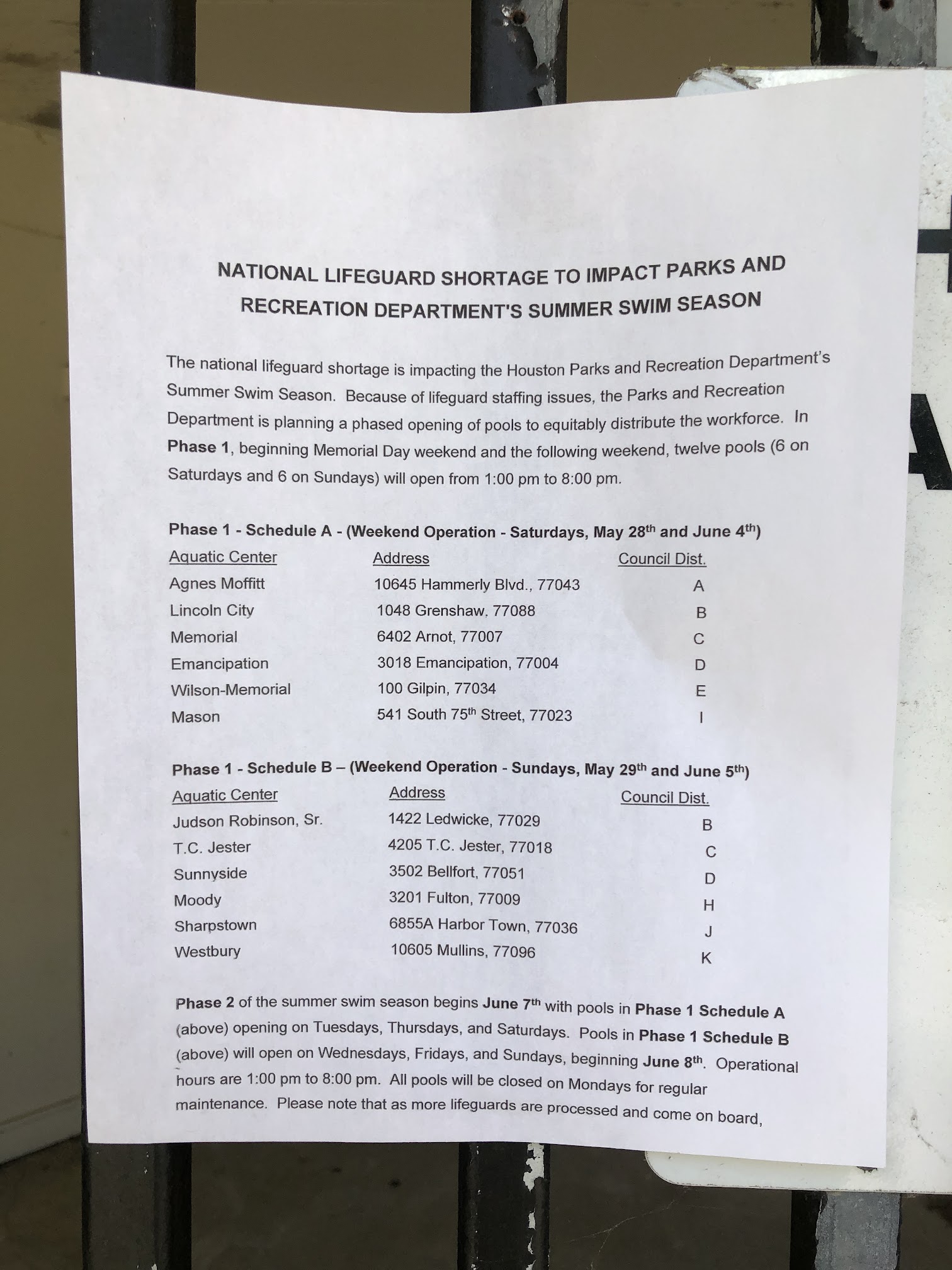 Said it wasn't open for August to September on weekdays