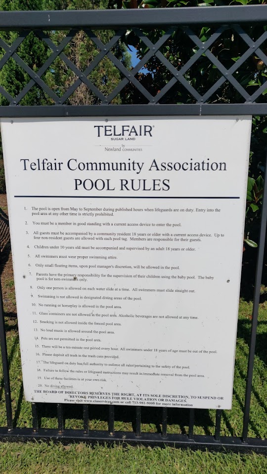 What are people saying (AI review summary)? The New Territory recreational center in Sugar Land, Texas, is described as a vibrant family-friendly haven with excellent aquatic and outdoor amenities. Its highlights include a delightful splash pad playground and an inviting pool, noted for being smaller and shallower than some, but featuring a convenient 2.5 ft area suitable for young children. The center also offers a nice playground and beautifully landscaped surroundings, making it ideal for walking with family or pets. It is praised for its well-maintained facilities and attentive staff, fostering an atmosphere of relaxation and recreation.