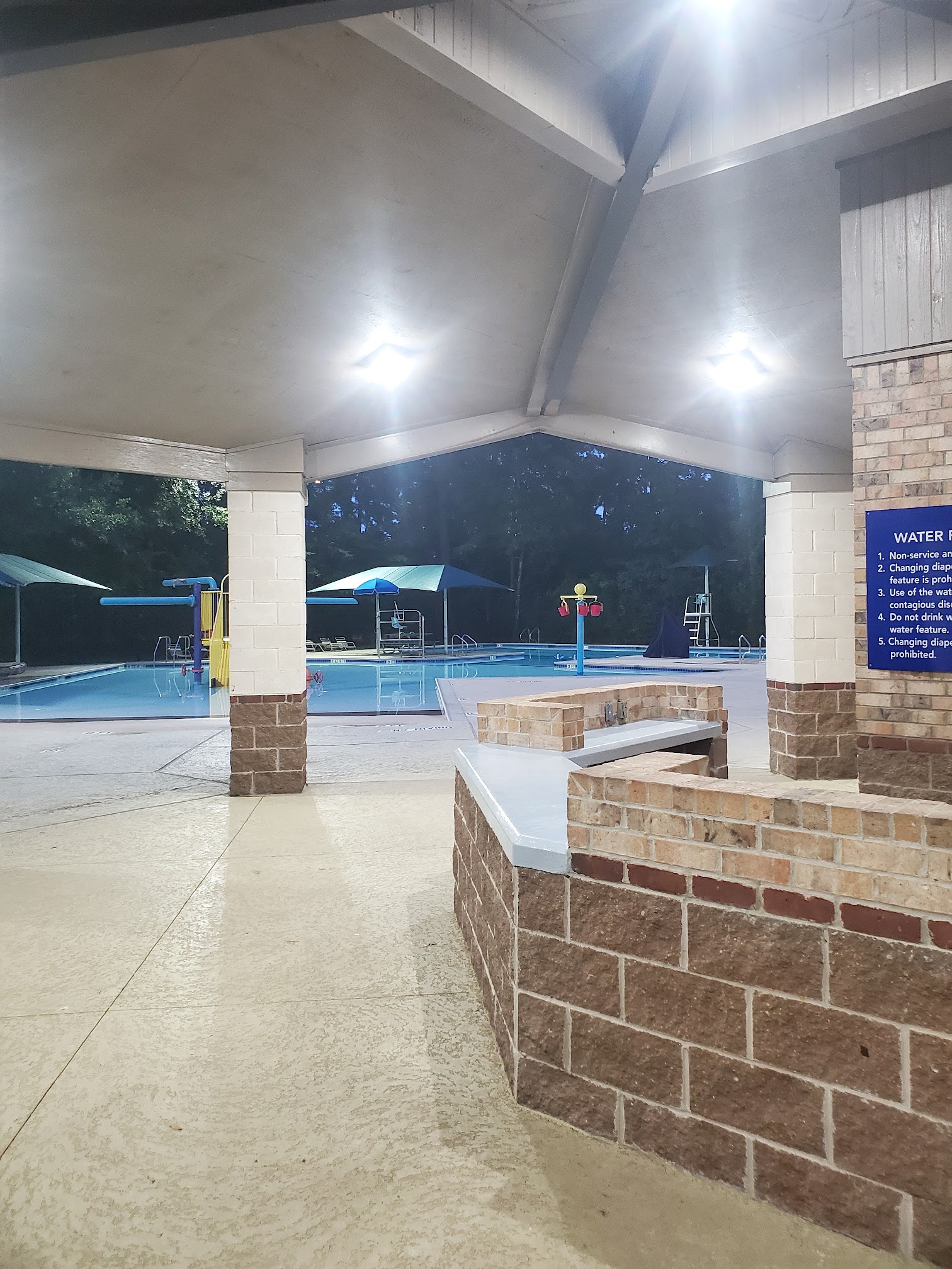 Amazing little neighborhood park, awesome playground for kids from 5 and above I'd say, and picnic pavilion with lots of seating and a grill. Now the Pool is the main course here during the summer, its a very good size for the usually small amount of people you find here even on a day like today (7/15/23) with 100 degrees on the thermometer (and feels like 110, thanks humidity); so you pretty much never have a problem finding some seating under the shade. That's another plus, the shade, we love Bear Branch Pool due to the size and games but it literally has no shade close to the pool except in the deep area for most of the day, this one has amazing shade coverage from open til noon and gets plenty again at the hottest part of the day, so it beats Bear Branch in that easy for comfort/not burning yourself with this heat and UV ray intensity. Also has very decently sized 'deep' end for doing some laps - though as a former swimmer, pretty sure its not 25yd long. HIGHLY recommend for either couples or couples with kids.