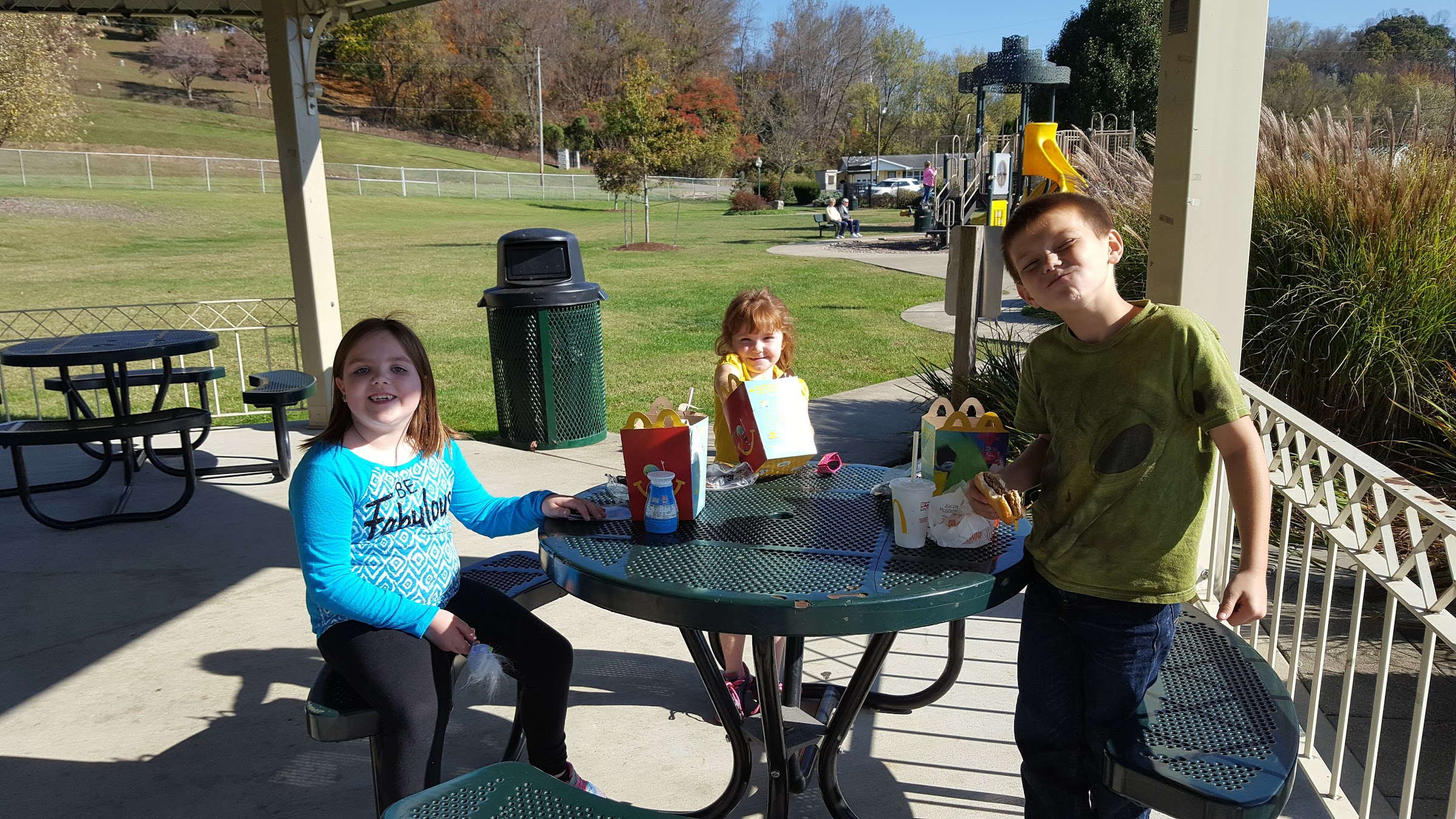 Beautiful park for family time until you see a group of Jr High to Sophmore aged kids running around smoking and climbing all over the veterans monuments. Poor taste of judgement for kids to do something like that. The ones in the background on the hill.