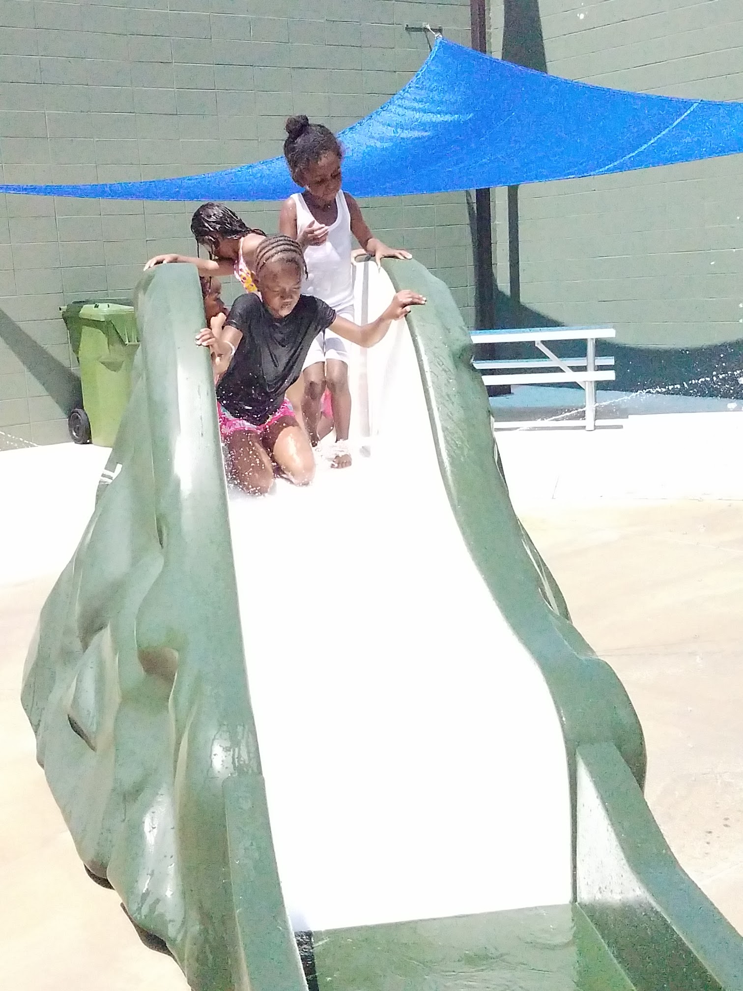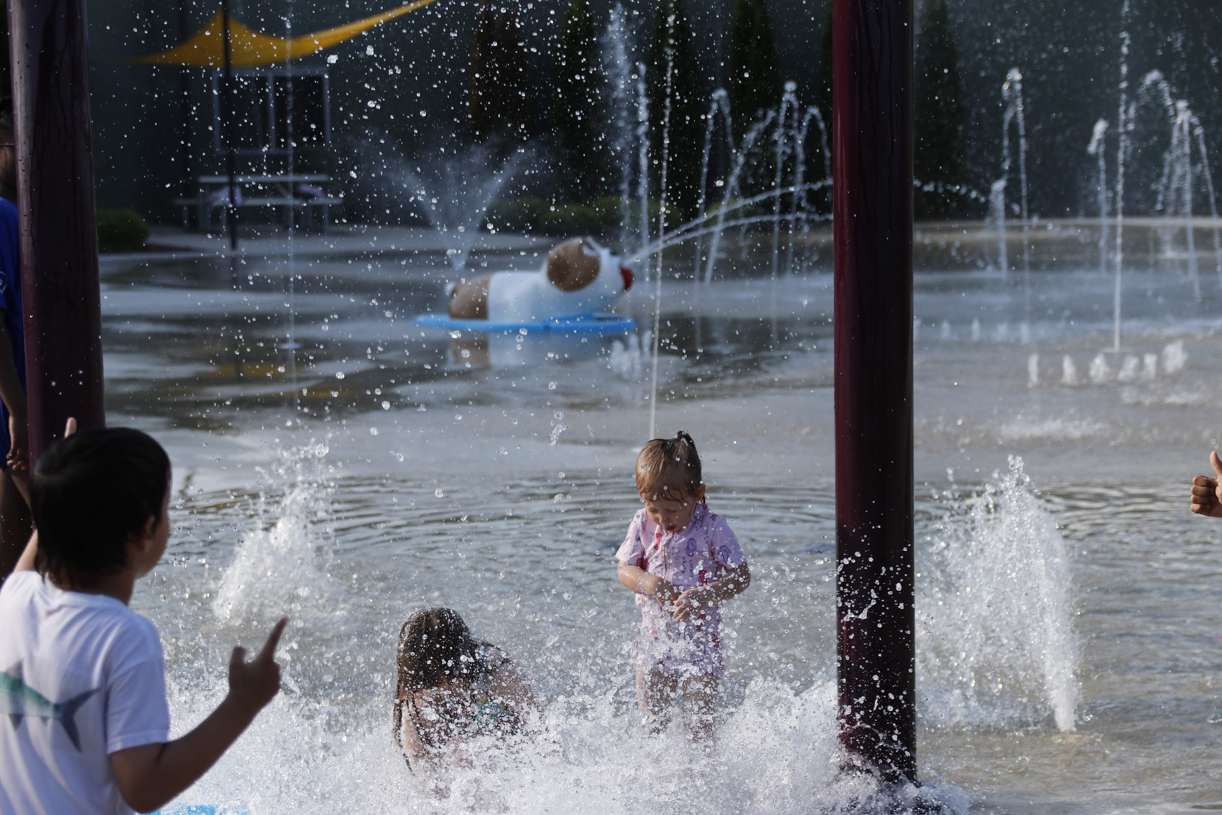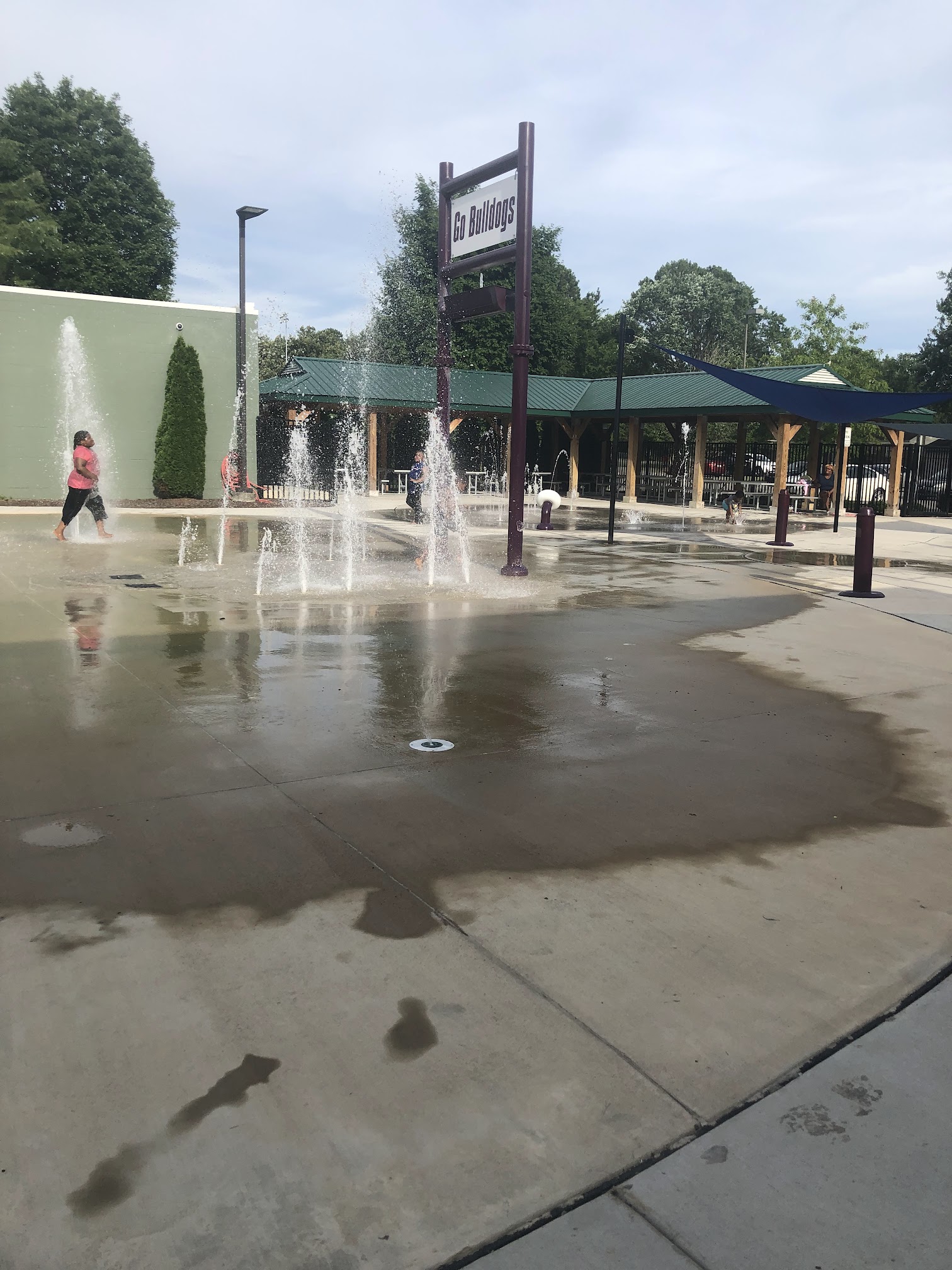 We have used the splash pad many times! There is shade for parents and picnic tables for meals. Ice creams or food trucks often come by. The playground is not shaded, so the best time is morning or early evening for that. The pool is fantastic! It is clean, affordable, and has locker rooms. Every time we go, the life guards are very observant and on top of their rules, but reasonable. Their swim test for kids has been clearly instructed, and they allow kids to test with goggles. The diving boards are super fun and finally fixed!
