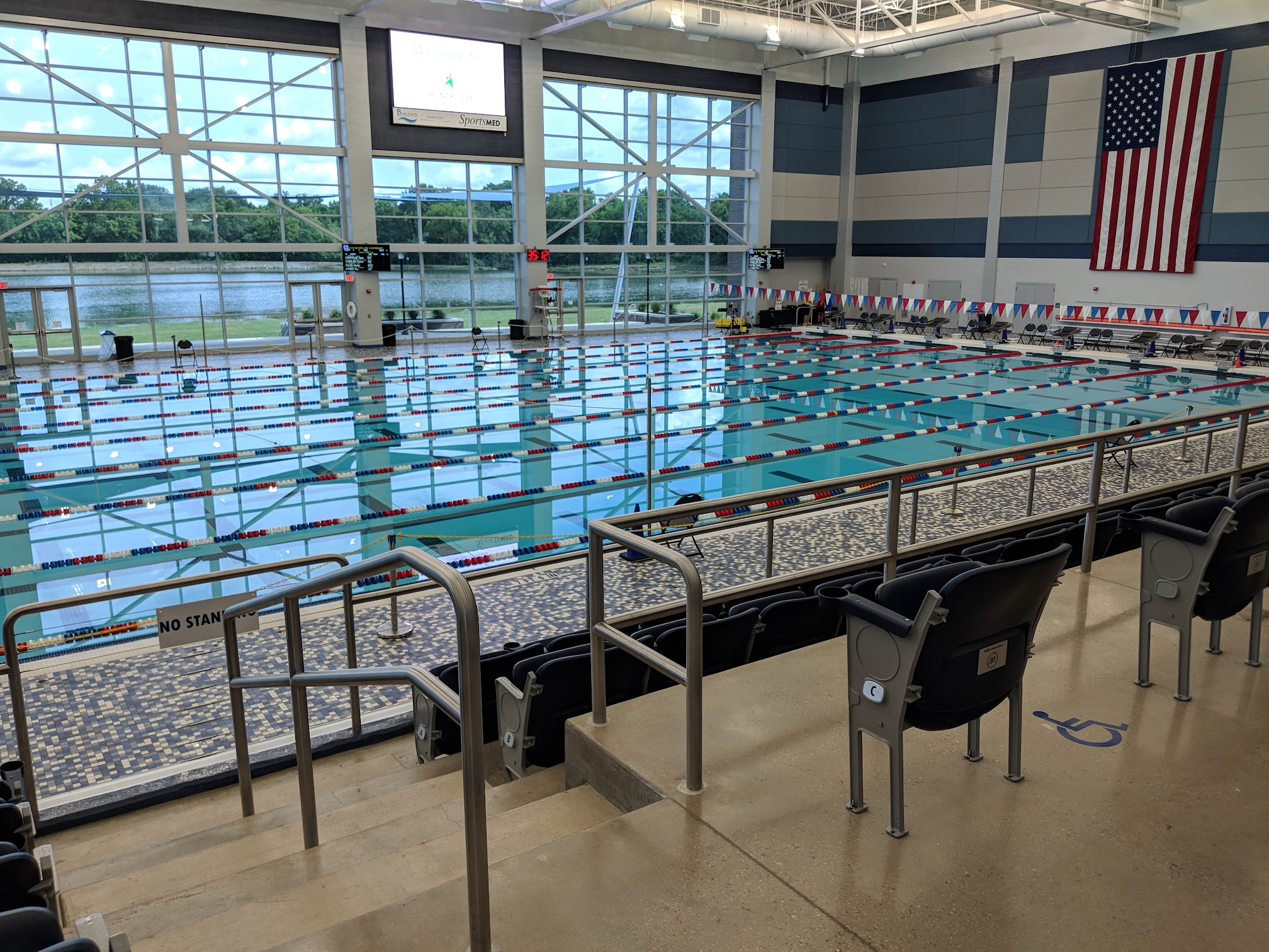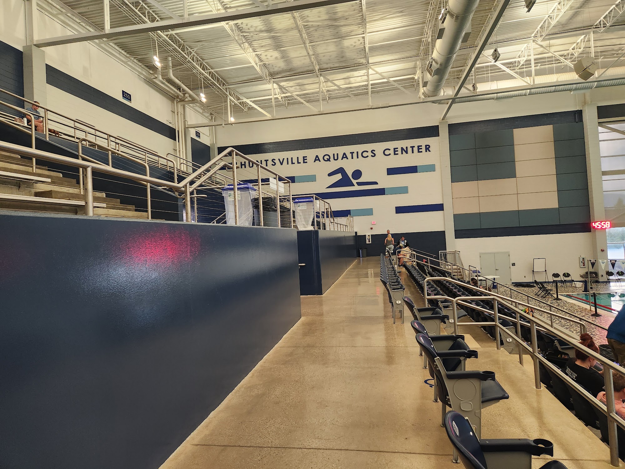 Great facility for a swim meet. The facility was very clean and offered stadium seating in the front and bleacher seats above to watch athletes. Birmingham Swim League was well represented.