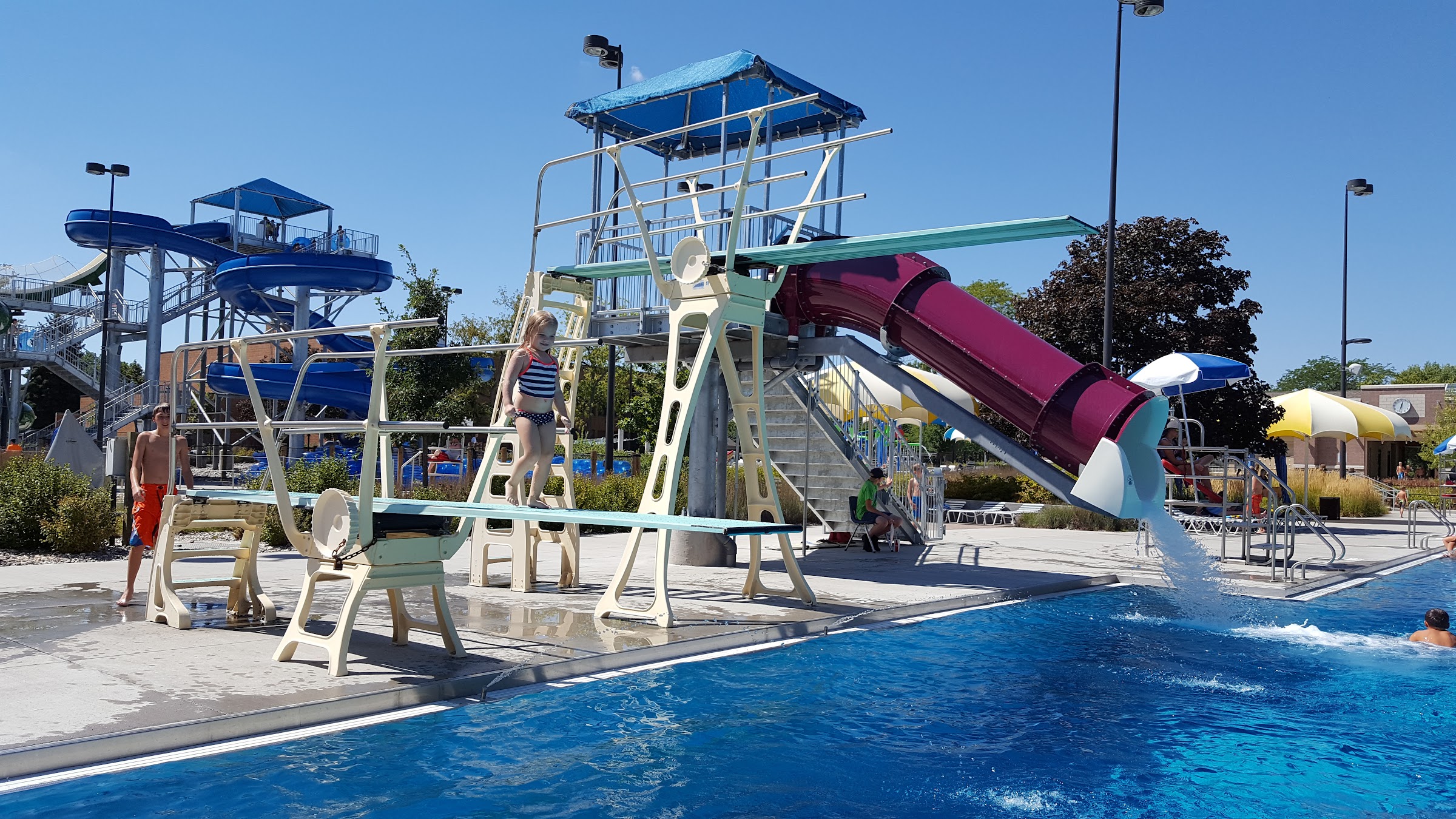 Waterpark featuring pools for diving and wading, plus a lazy river.