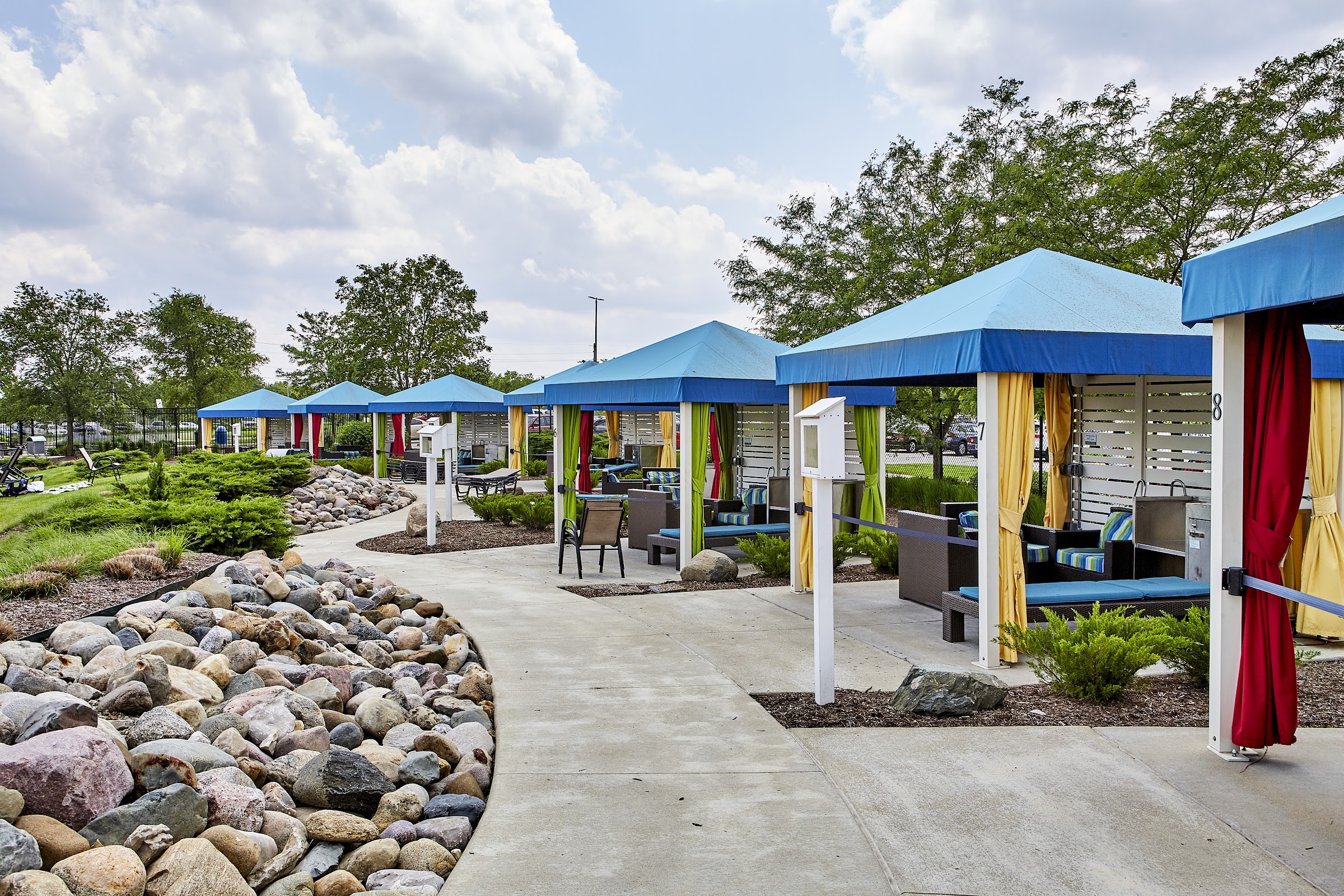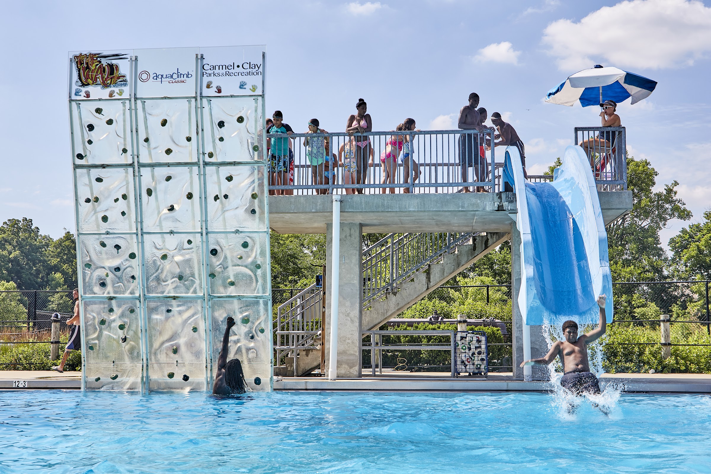 This is a wonderful water park run by Carmel Clay Parks. Municipalities across the country should look at this attraction as a possible amenity for their residents and visitors. We are in Cincinnati but visit every year when in Indy visiting friends. They have something for every age here. A couple neat, large splash grounds for the littles. A dual FlowRider for the adventurous (you have to sign a waiver). The Lazy River is a little small, but there is no shortage of young and old relaxing in an inner tube (you have to be IN an inner tube or the staff will come at you). And a few slides- one dual with a body and tube slide. Tube is on the left when waiting in line, body on the right. The other slide is a short body slide that plunges into a pool shared with a rock climbing wall. My kids really enjoyed this, possibly due to the short line. We never ordered food here, we bring in our own. Alcohol is not allowed, and they do search your stuff. The cabanas are affordable and very helpful on a busy day. They comfortably fit our party of six, come with a fridge and fan, and run around $200. You still have to pay admission in addition to this fee. The staff is generally friendly and helpful, including the lifeguards. We've never had a negative interaction with them. They do have a very aggressive inclement weather policy. If they expect thunderstorms within a 30 mile radius, they will shut down the pool. And by shutdown that means you have to leave the park entirely, and wait for further info, on their Facebook and phone hotline. On the day we visited this year they shut down twice due to rain. No lightning, but quick rain storms. They were not quick to post updates on their socials and phone hotline. After the first delay they reopened after 90 minutes. The second rain delay we just left. Eventually the park just decided to close for the day. It's seems aggressive and somewhat unnecessary, but probably driven by their insurance company I suspect. No refunds or tickets reissued due to the weather, but that's the norm with these venues. Find a day with good weather predicted, book a cabana if available, and you'll have a blast. I wish more municipalities would offer such a great asset to their communities.