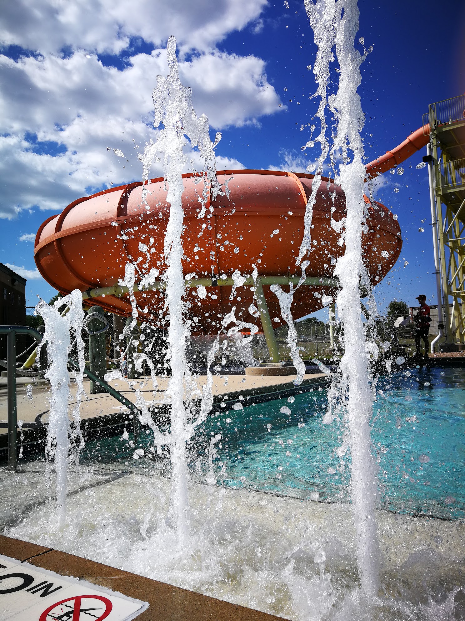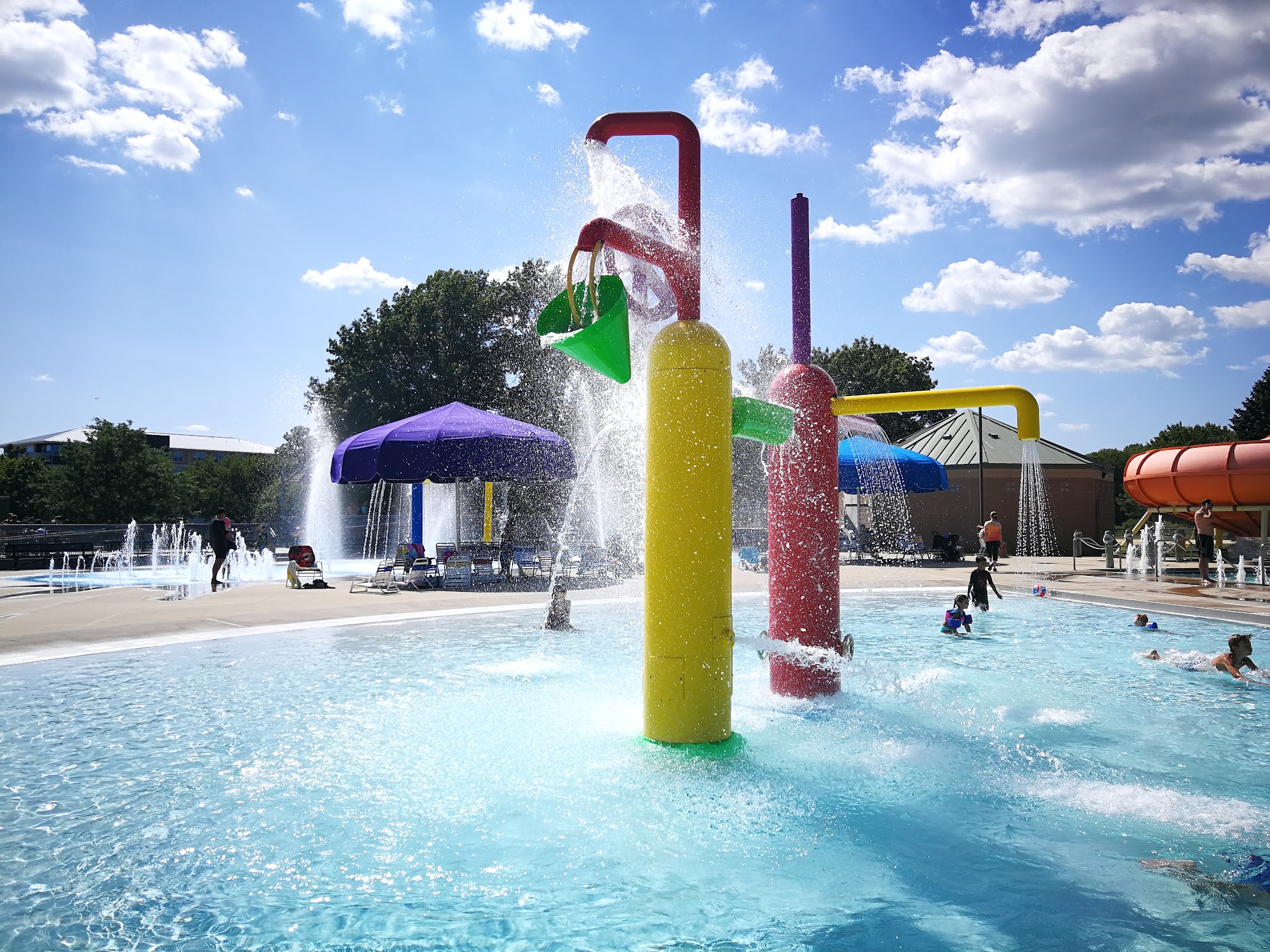 Too much fun. Entrance fee here is less than $5 each and it's worth every cent. They have water slides for kids as little as 3 all the way up to a whirlpool one that was even fun for me. There are fun water features that shoot out and poor water. They have a concessions stand with giant hot dogs. But the drinks are expensive and the dogs take a long time to cook. The lifeguards were all very friendly and attentive. Overall fun place to take the kids in the summer time. Make sure you avoid days with summer camps.