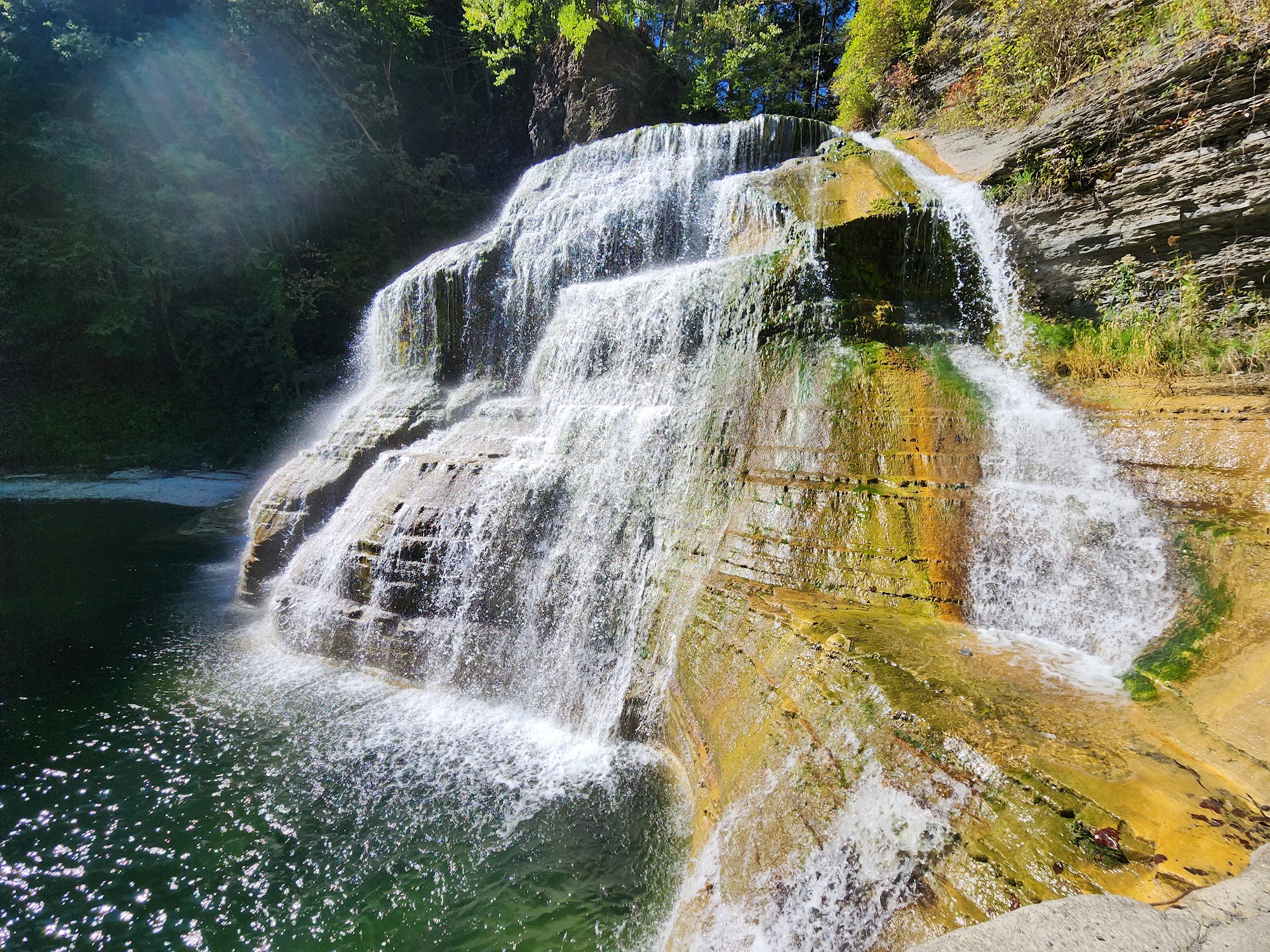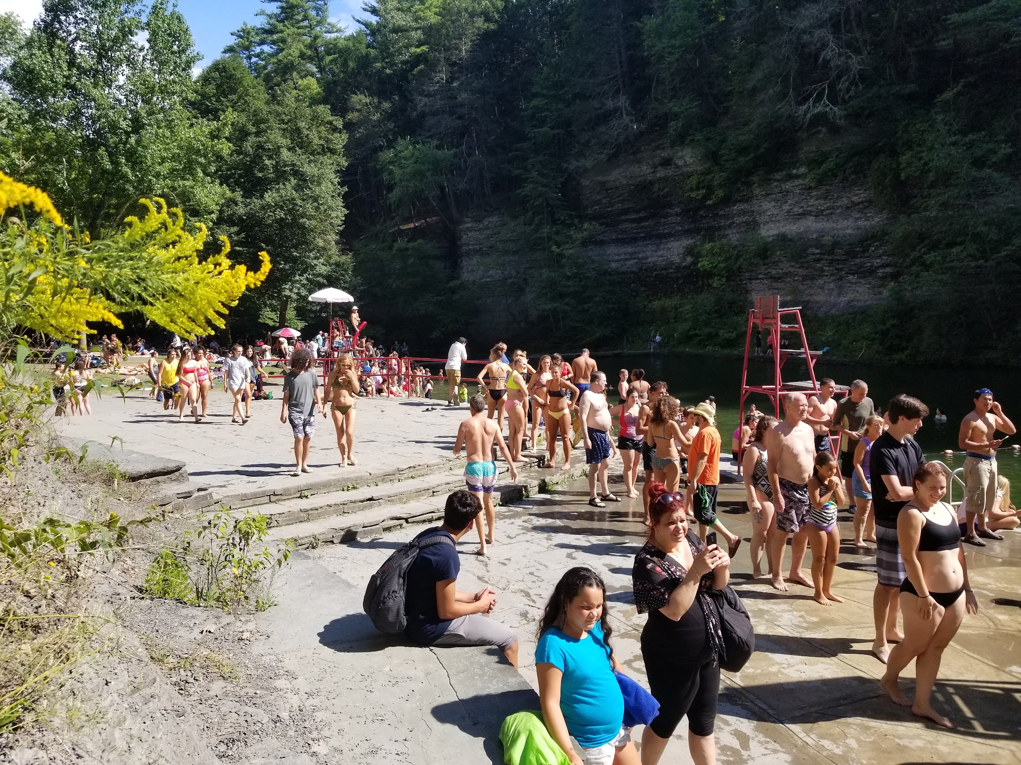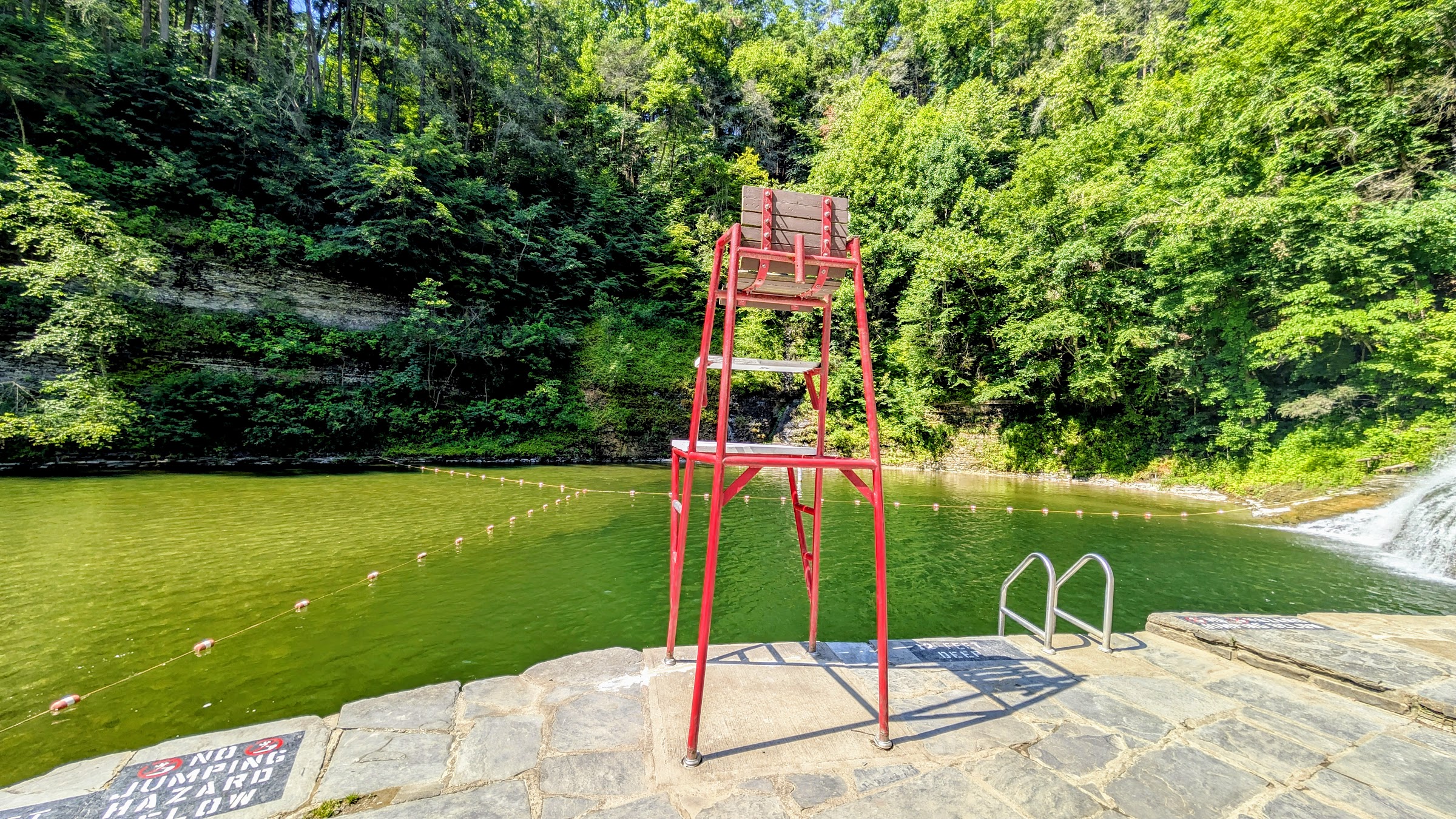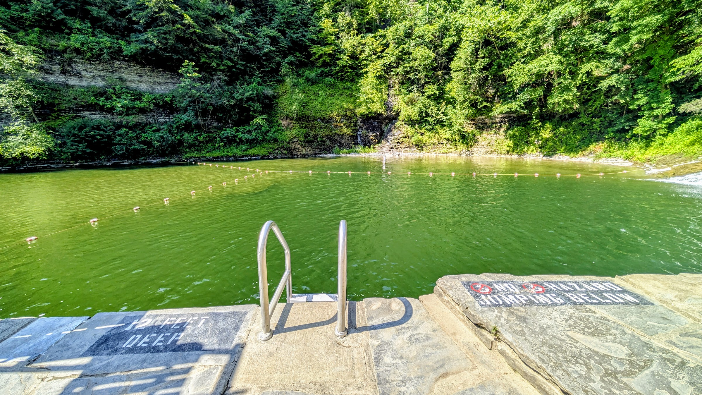 What are people saying (AI review summary)? Robert H. Treman State Park offers an excellent, beautiful, and well-maintained natural swimming area, often described as a refreshing swimming hole or pool, located downstream from a picturesque waterfall. The water is consistently noted as ice-cold and refreshing. Visitors appreciate the clear markings, steps for entry, and presence of lifeguards, ensuring a safe experience, though signs advise against jumping due to hazards. While swimming is a major draw, with some visitors mentioning diving, the park also provides stunning views of the waterfall, especially during times of the year when swimming might not be feasible. The park is praised for being clean, welcoming, and a great alternative to a beach, leading many to express a desire to return.