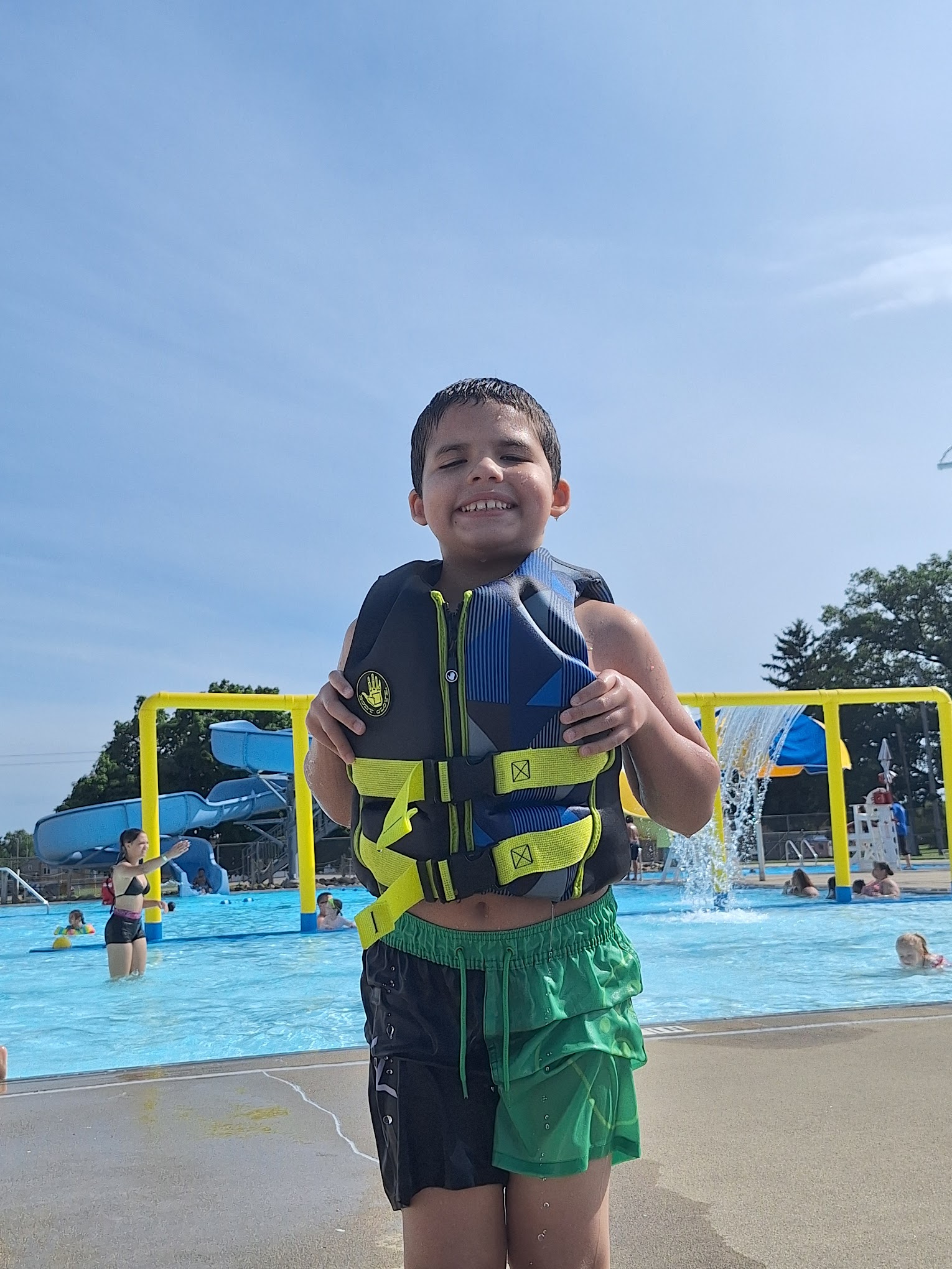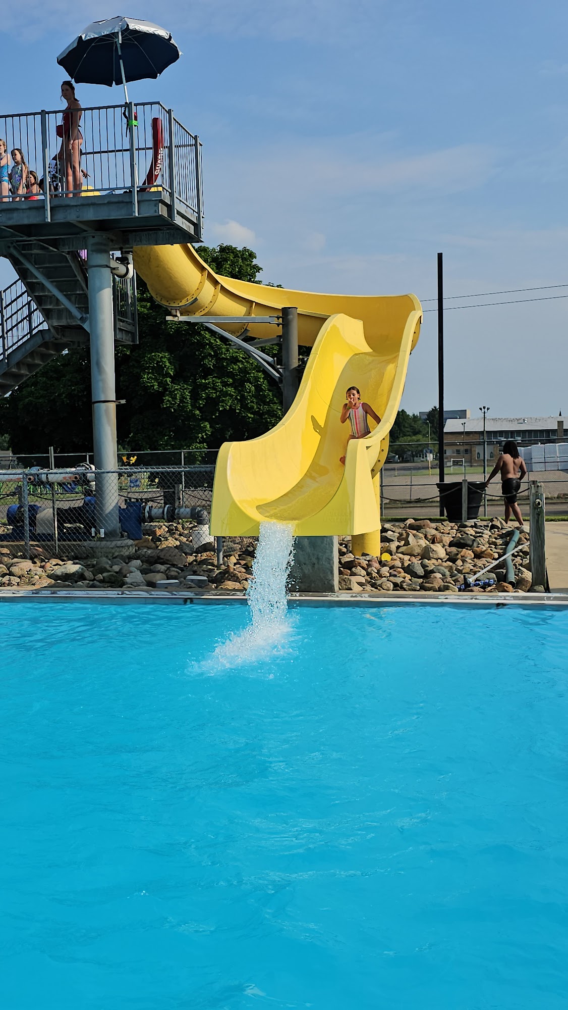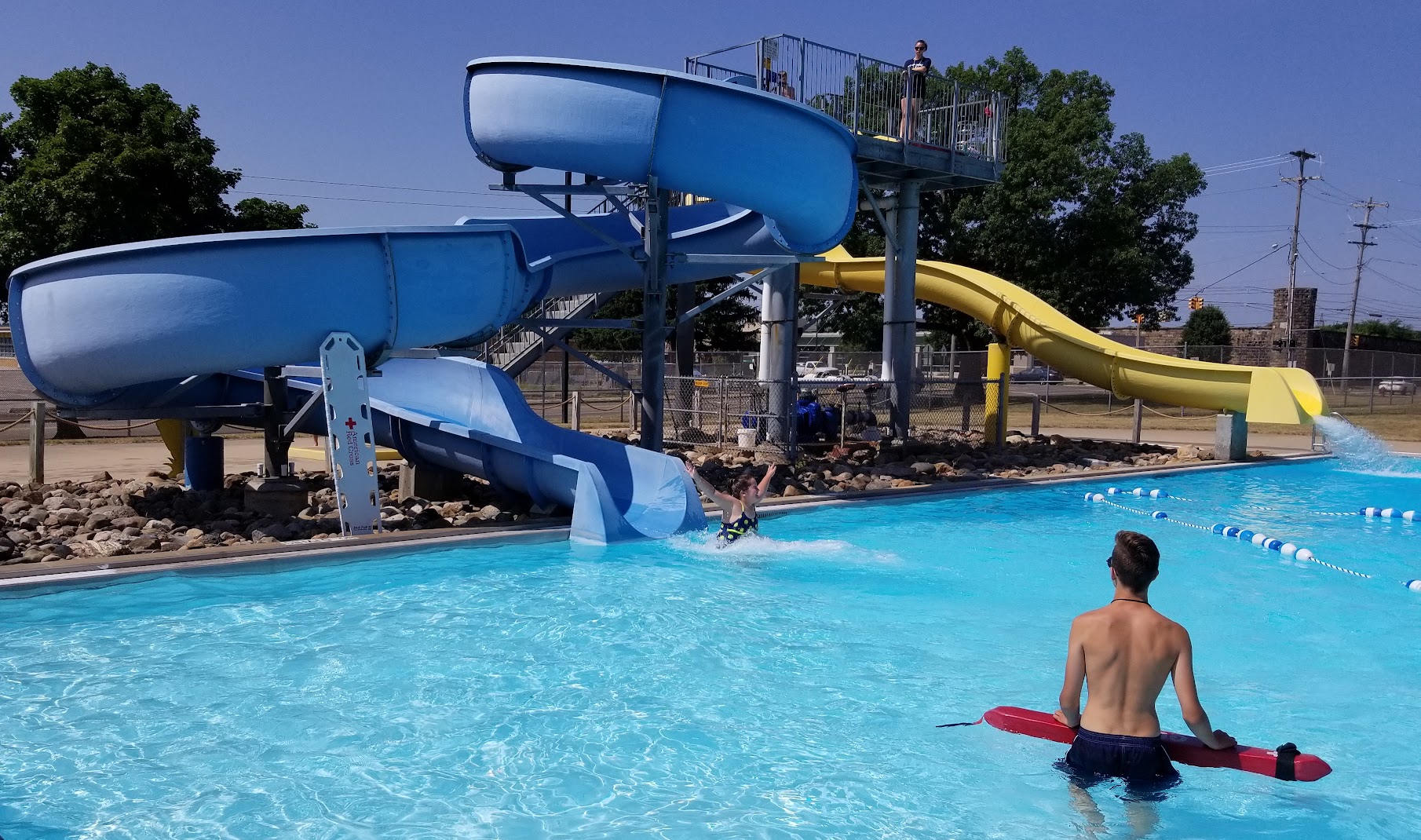 Budget-friendly recreational pool offering waterslides and a splash pad, plus lifeguards.