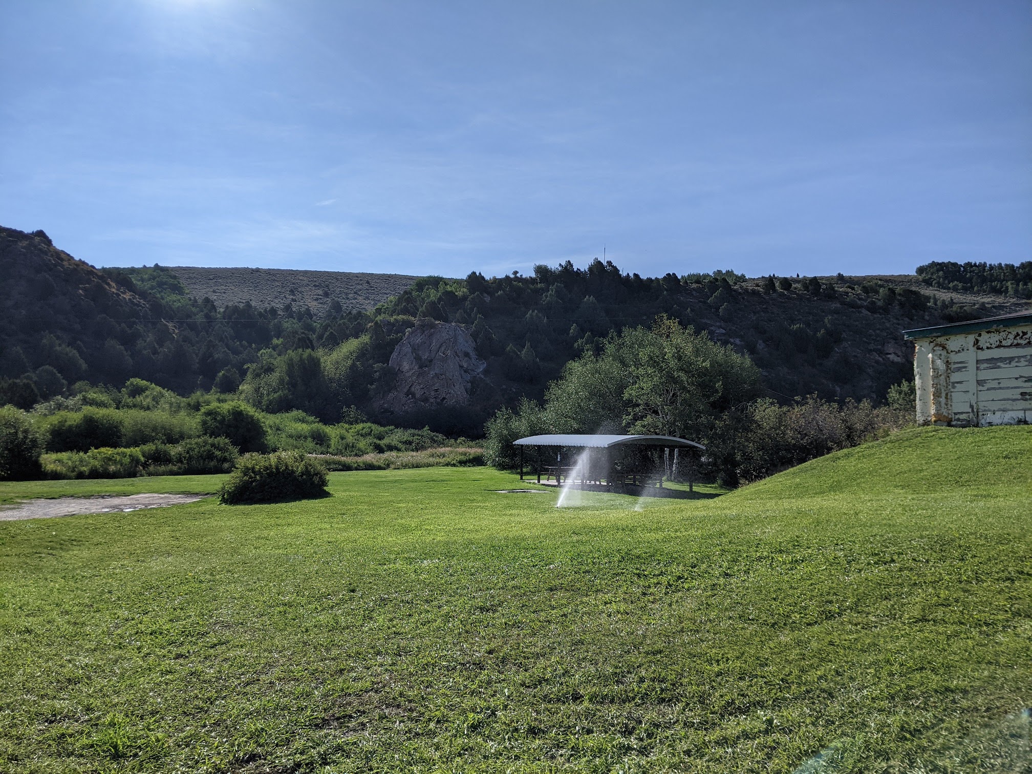 Green Canyon Hot Springs is a family establishment! If you're looking for a quiet experience, you should hike at least 2miles to get to it, haha. The hot spring is actually pumped to two pools. The big pool is pretty mild, like nice bath water. The smaller pool which is still kinda big as far as hot springs go, is the "hot" pool. As they state on the website, there's no sulfur smell which is pretty unique and very pleasant. The hot pool is outside, still enclosed but no roof, just a little bit of breathable shade material going overhead. Very fun experience if you treat it for what it is, a place to camp with your family and also enjoy a pool and hot spring with other campers/day-trippers.
