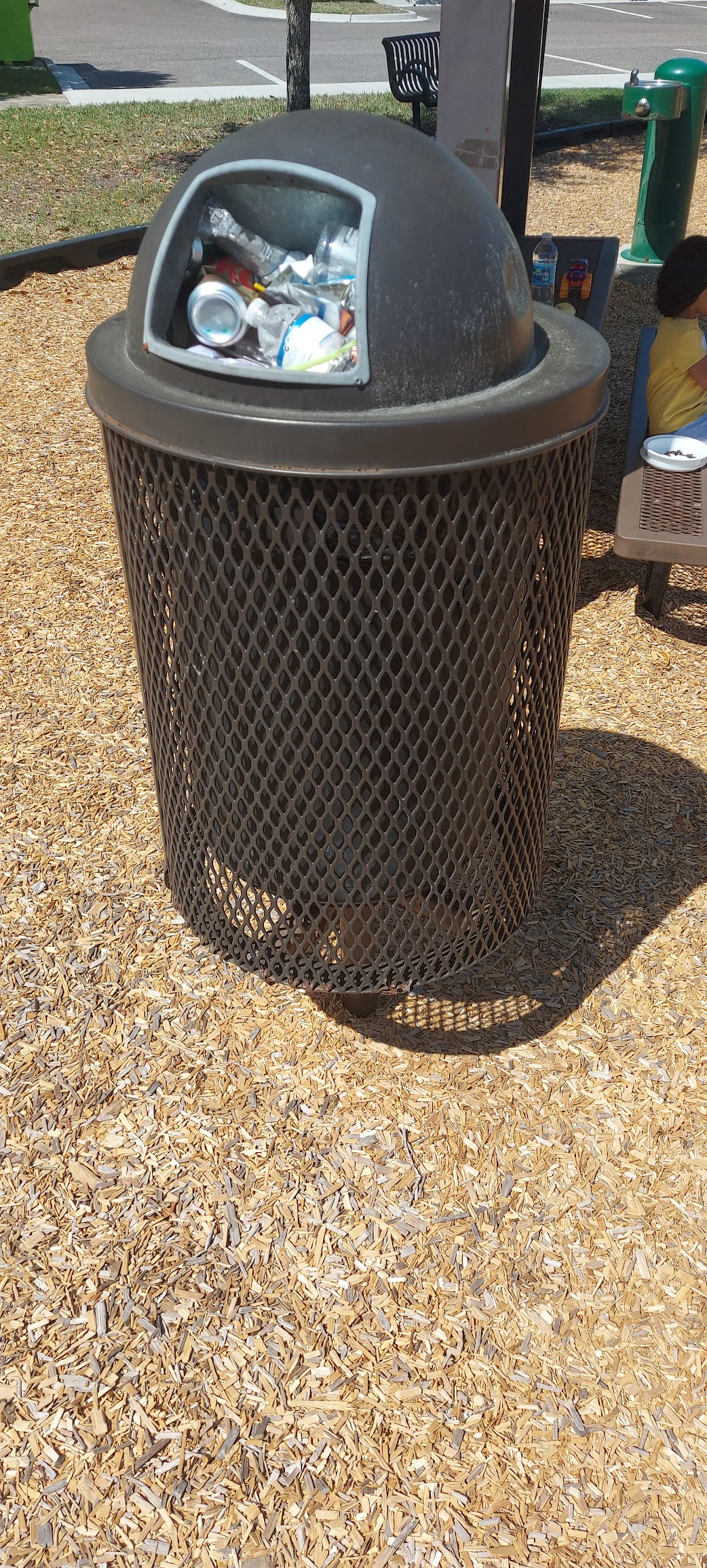 It's an ok playground. What gets me is the swings. They are meant for smaller kids (0-3 years of age). My son who is a small 5 year old, can barely fit in the swings. Other notes, the trash was overflowing on a Wednesday afternoon. The water fountain, which no one really uses anymore, was backed up and holding water making it a bird bath. The picnic table under the shade in the playground is in need of some repair as it's lost it's exterior protection and is rusting in a spot. See pictures for details. The actual jungle gym is pretty fun for kids to run around and make believe. Kids just like the see-saw (spring) and the spring whale. So 5-10 mins and kids are ready to go to another park.
