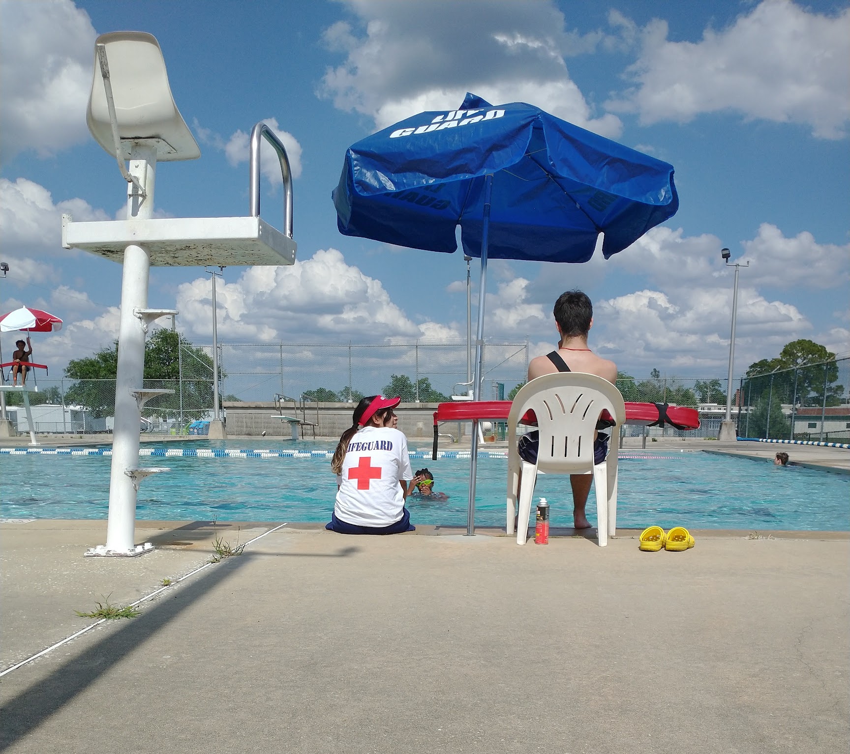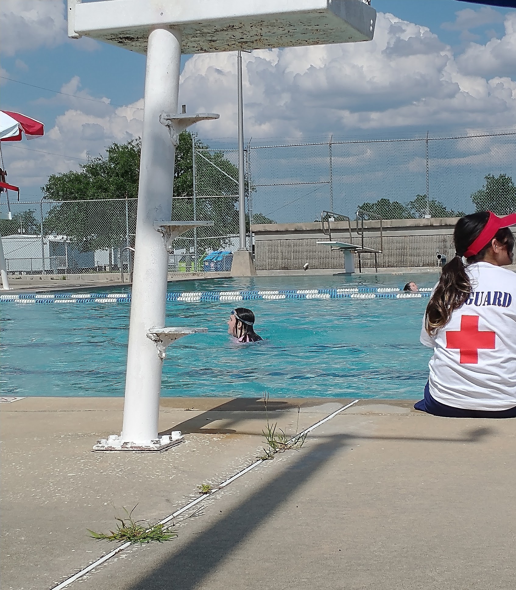 Public swimming pool where some reviews praise the lifeguards.