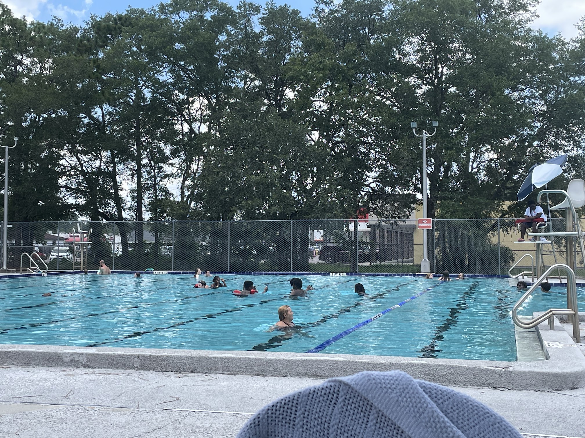 Pool is nice and refreshing. But the bathrooms are Filthy and very dirty. The pool deck also has socks and other trash all over by the bleachers and in bathrooms. Each lifeguard has their own way of talking to people...