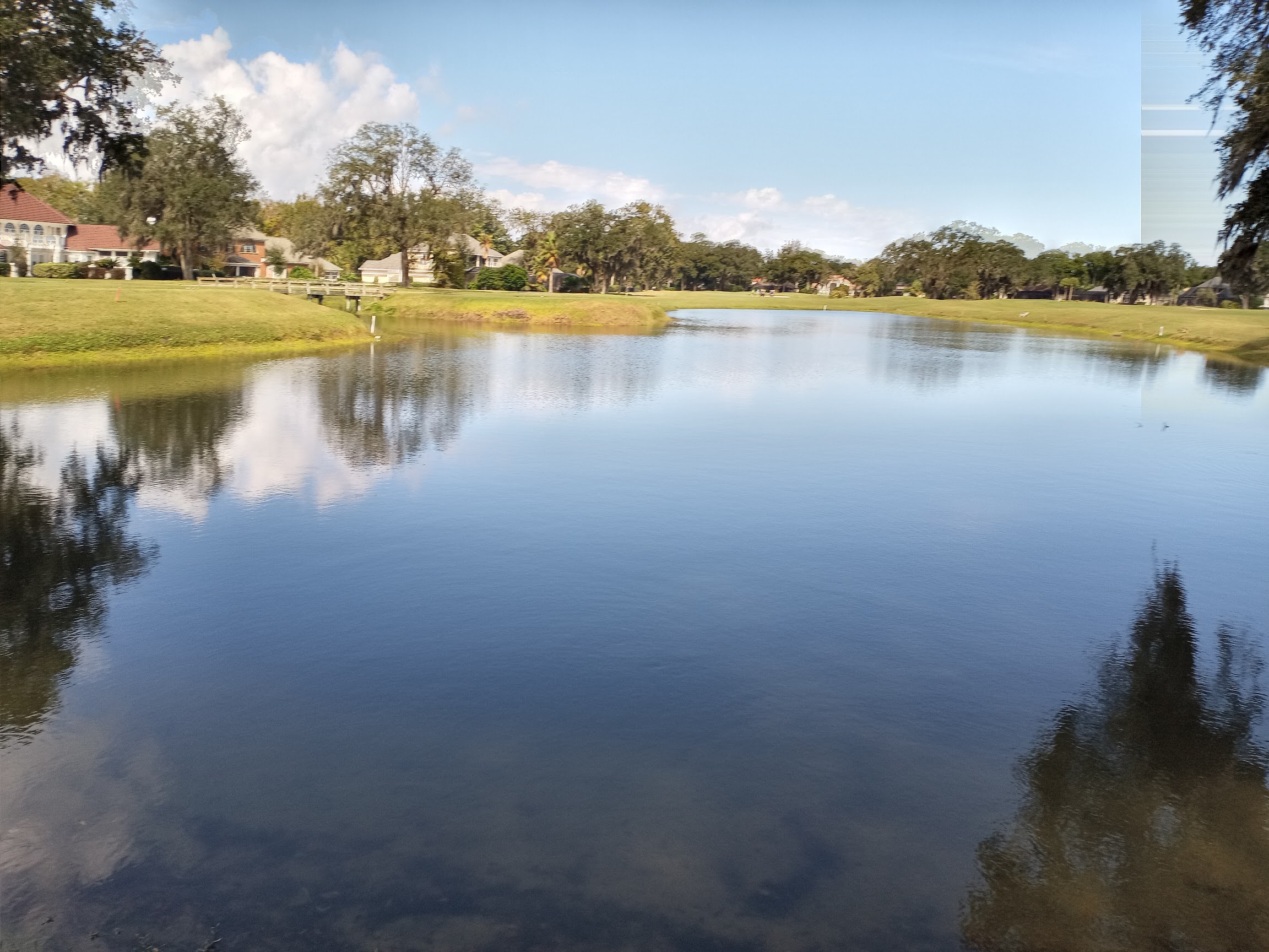 Golf course with water on every hole, plus tennis courts, and a swimming pool.