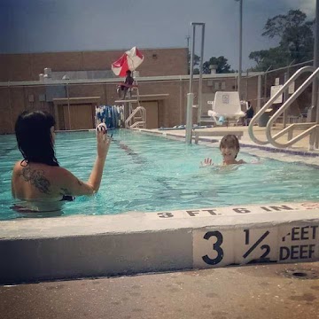 Lifeguards are meh but the two that stayed in the lifeguard cubby and repeatedly cursed( words nobody should be saying with small children around) I over looked cause I'm nosy and here for the tea too. Kids were too busy having fun! If they going to get loud over who ever Johnathan is, I'm listening too. Kinda amused me while I watch my kiddo. It also amused the eldery lady swimming to even thru we didn't chat just exchange looks when they got loud in amused way. Made me smile cause I knew we were both being nosy. I think you have to use porta-potties. I refused to investigate that. One diving board works, they were letting kids jump so that's fun, and they let people hang out on the deep size which is cool. ( I didn't let my kid jump, she hasn't before even thru she can swim, the fact the LG wasn't even looking at them worried me. No chances here!) By the time I relaxed and and was like okay, I promised my kid a big pool we are going to have fun. This is what we did as a kid. Two unusual people showed up and sat thier stuff next two ours. On a scale from 1-10. They were a 7 on tweakness. I noped out of there. Everyone else in the pool was amazing and everyone looked to be having a good time and we did too for what it was worth which was free. I just don't take chances and that's on me.