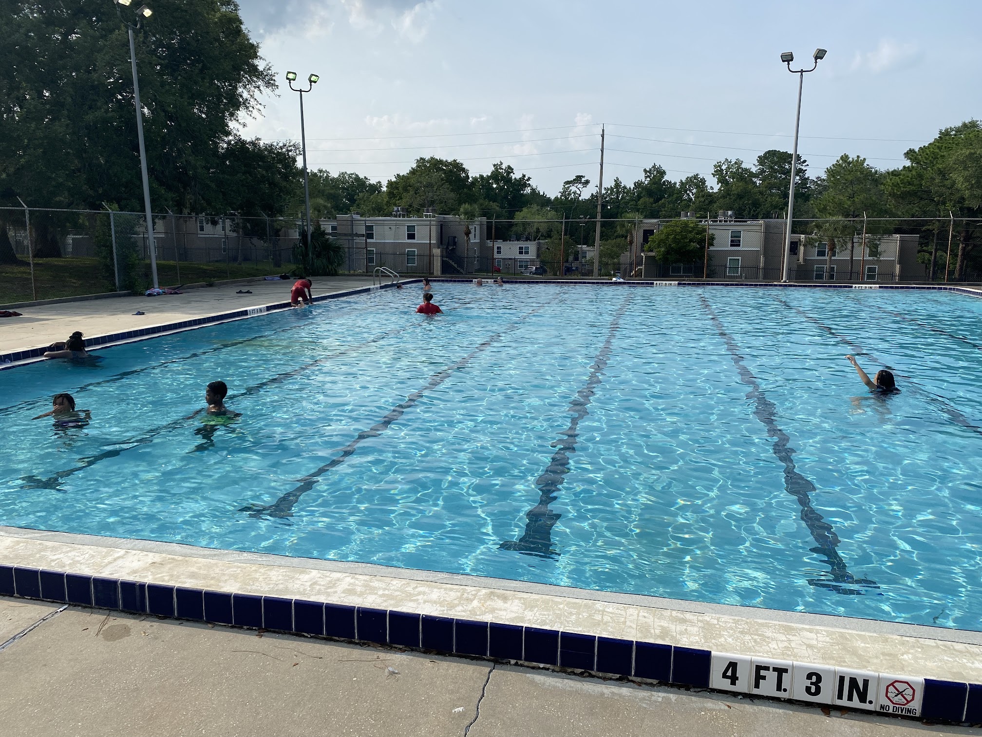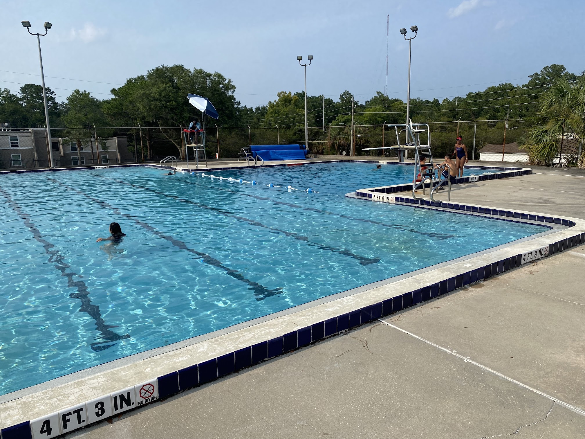 The water was dirty, bugs floating everywhere. They have a diving board but you can't use it. We almost got hit in the head with a football, while trying to give my daughter new swim lessons, then my daughter got told she had to take a time out for a belly smacker, a seperate life guard from the one on duty insisted they told her several times.. no they hadn't. So a football hitting swimmers is OK, but a kid can't jump? Definitely time to leave. I'll sweat out this heat before I ever come back here! The football stars can have this pool!!