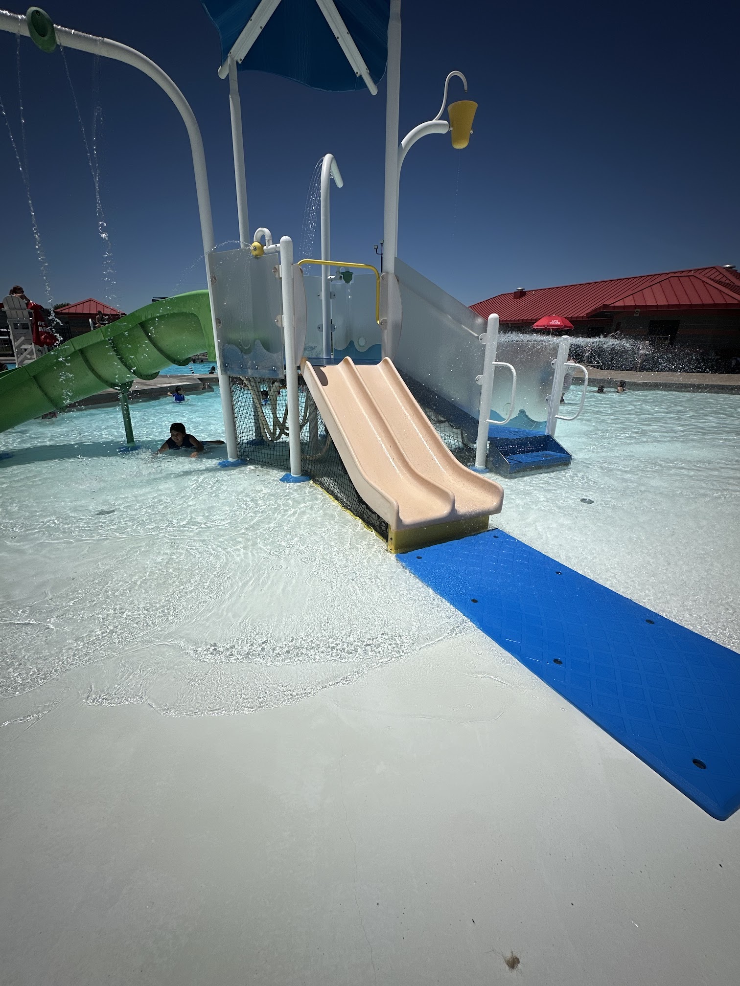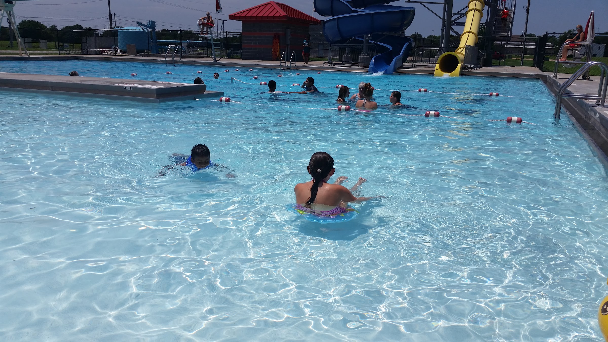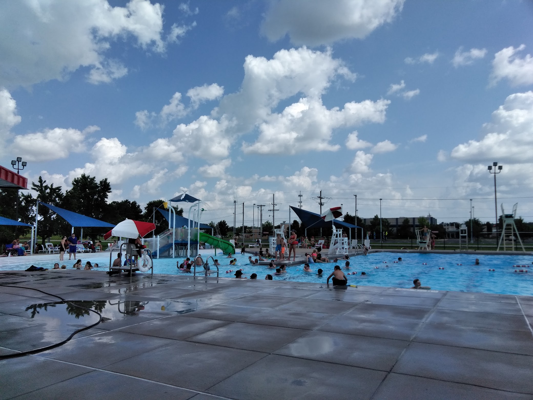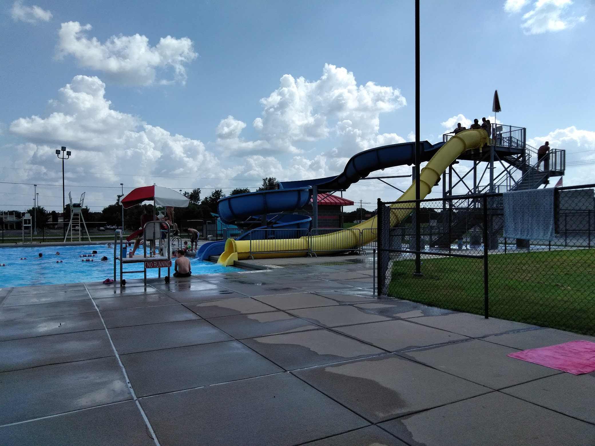 Perfect for a hot summer day! There is an area for the little kids slides and shallow water. Then an L shape area to swim, then two sections marked off one for diving and one for the water slides! They offer food, drinks and ice cream / ice pops at a MORE THAN REASONABLE PRICE! No need to try to sneak things in! Plus if you are a YMCA member the entry is free! Seating is limited so if you have a lawn chair bring it! Over all AMAZING!!