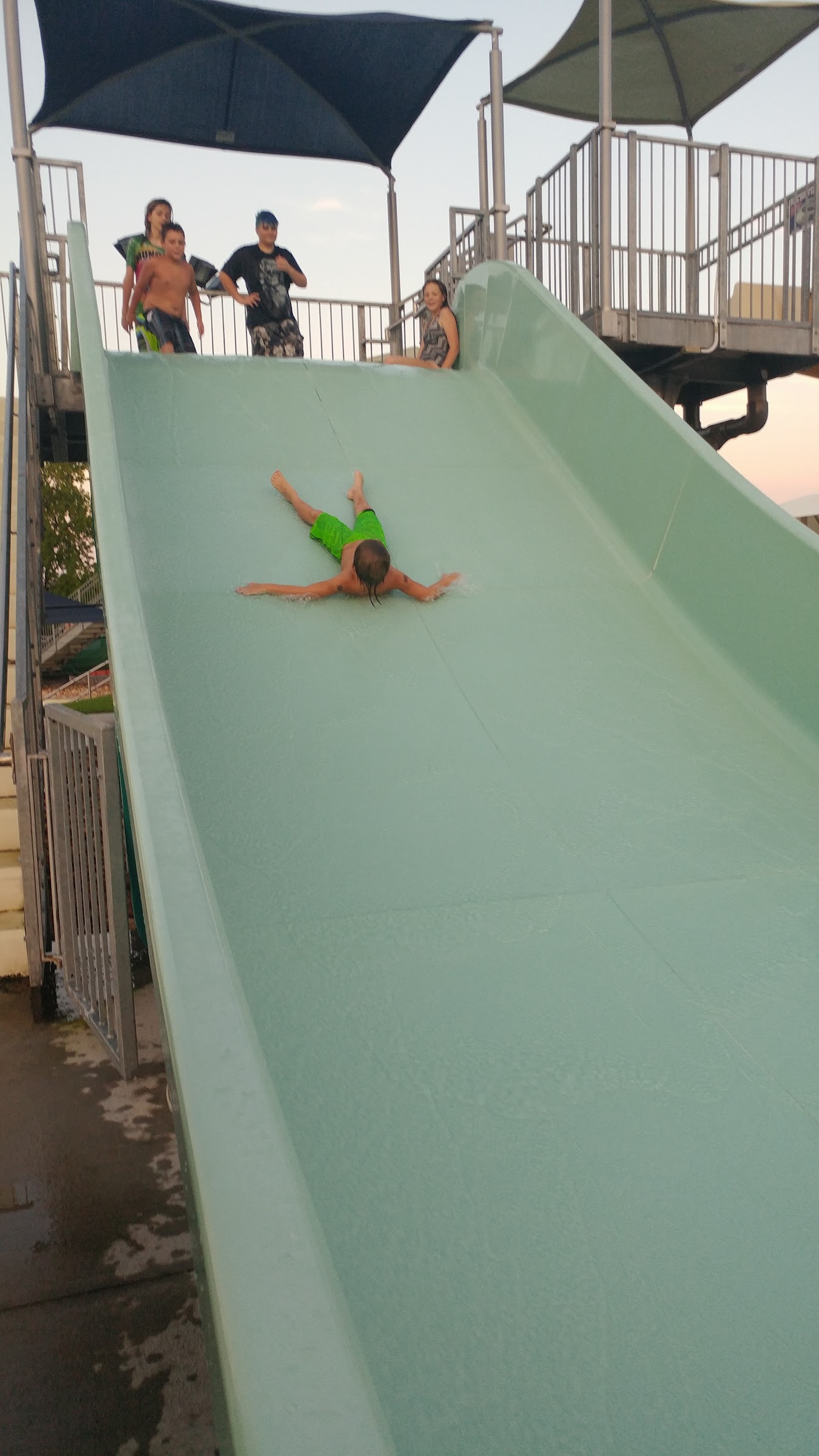 we really enjoyed this place. it was busy but its got a lazy river, area for really small kids and an area for adults along with 6 or more water slides water basketball rock climbing wall over the water, high dive and low dive among plenty of other kewl things we didnt get time to see or try. ive been to several equatic centers and this one is hands down the best.. bravo guys. five stars