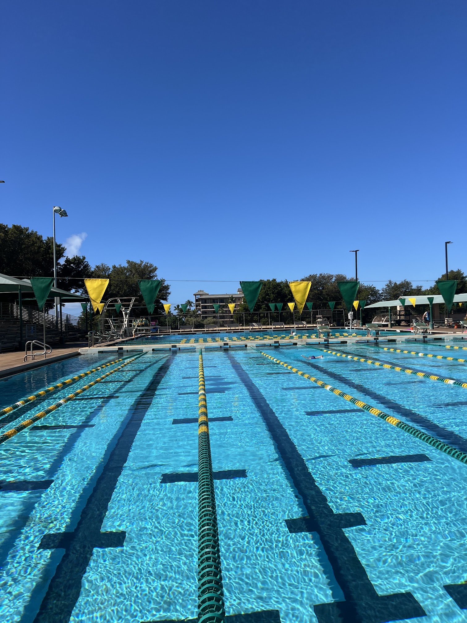 Excellent for laps or kids in the other pool. 🏊🏽‍♀️ It’s a new ozonator system now, so the water is so much better for skin and sinuses. They keep it clean! Just check the front gate white dry erase board as they are closed a lot of Saturdays for swim meets. Sundays only open noon to 4. Rest is 9am to 4pm usually unless trainings or cleaning 🧼 is happening.