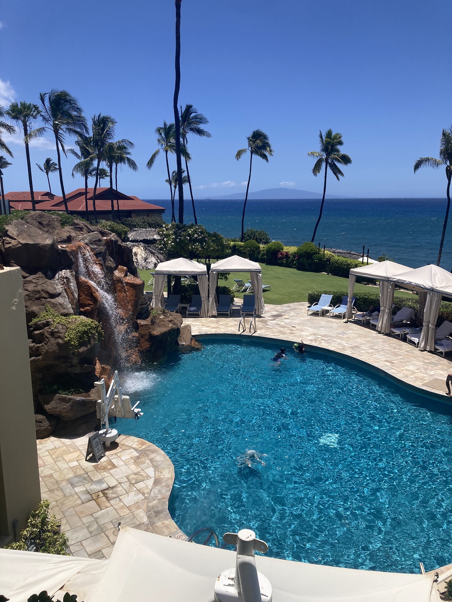 The Serenity Pool, located at the Grand Wailea, A Waldorf Astoria Resort in Kihei, HI, is an exclusive adults-only (18+) infinity-edge pool designed for a tranquil and relaxing experience. It features breathtaking ocean views, a swim-up bar, and luxurious lounging areas, providing a peaceful escape from the resort's more bustling family pools.